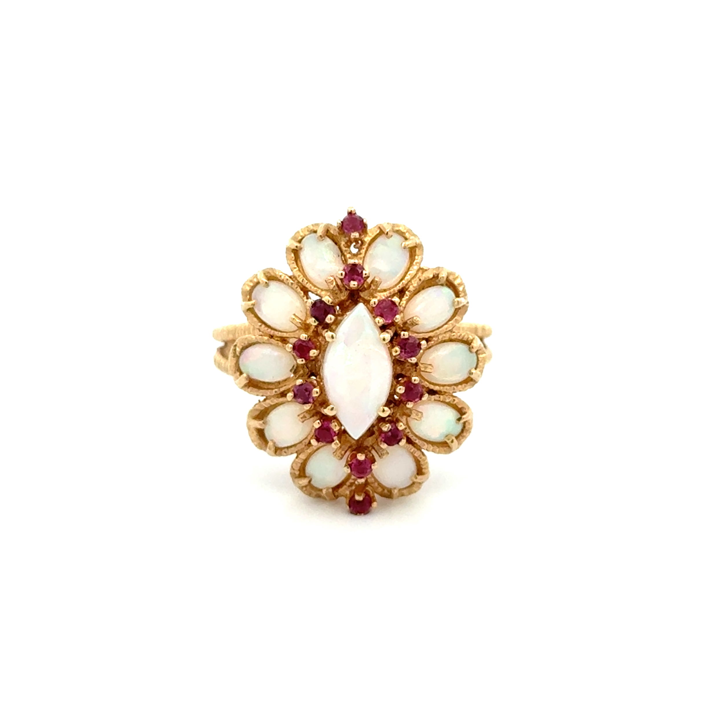 14K YG 1960's 1.15tcw Opal & .20tcw Ruby Dome Ring 7.2g, s10.75