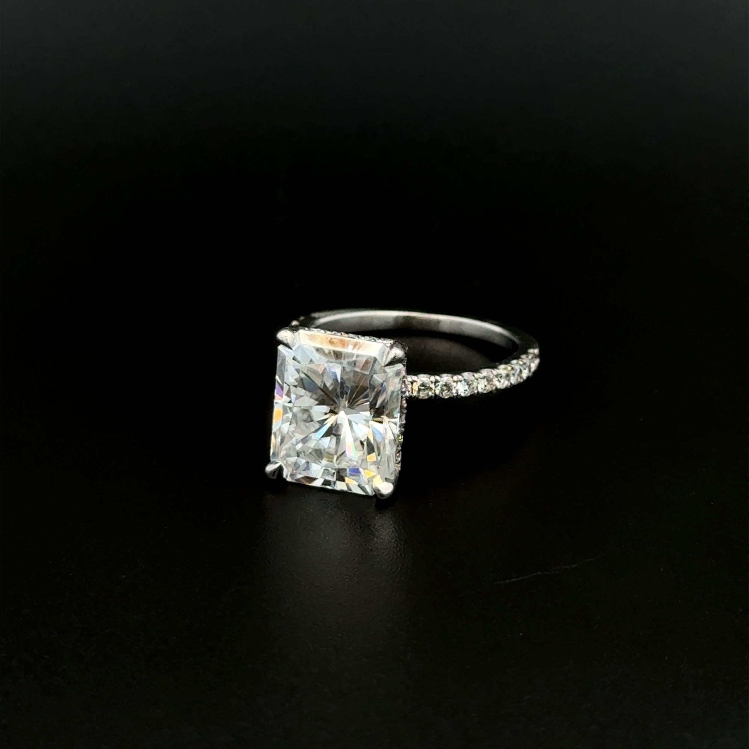 Platinum 4ct Radiant Moissanite & .38tcw RBC Diamond Engagement Ring 5.0g, s5