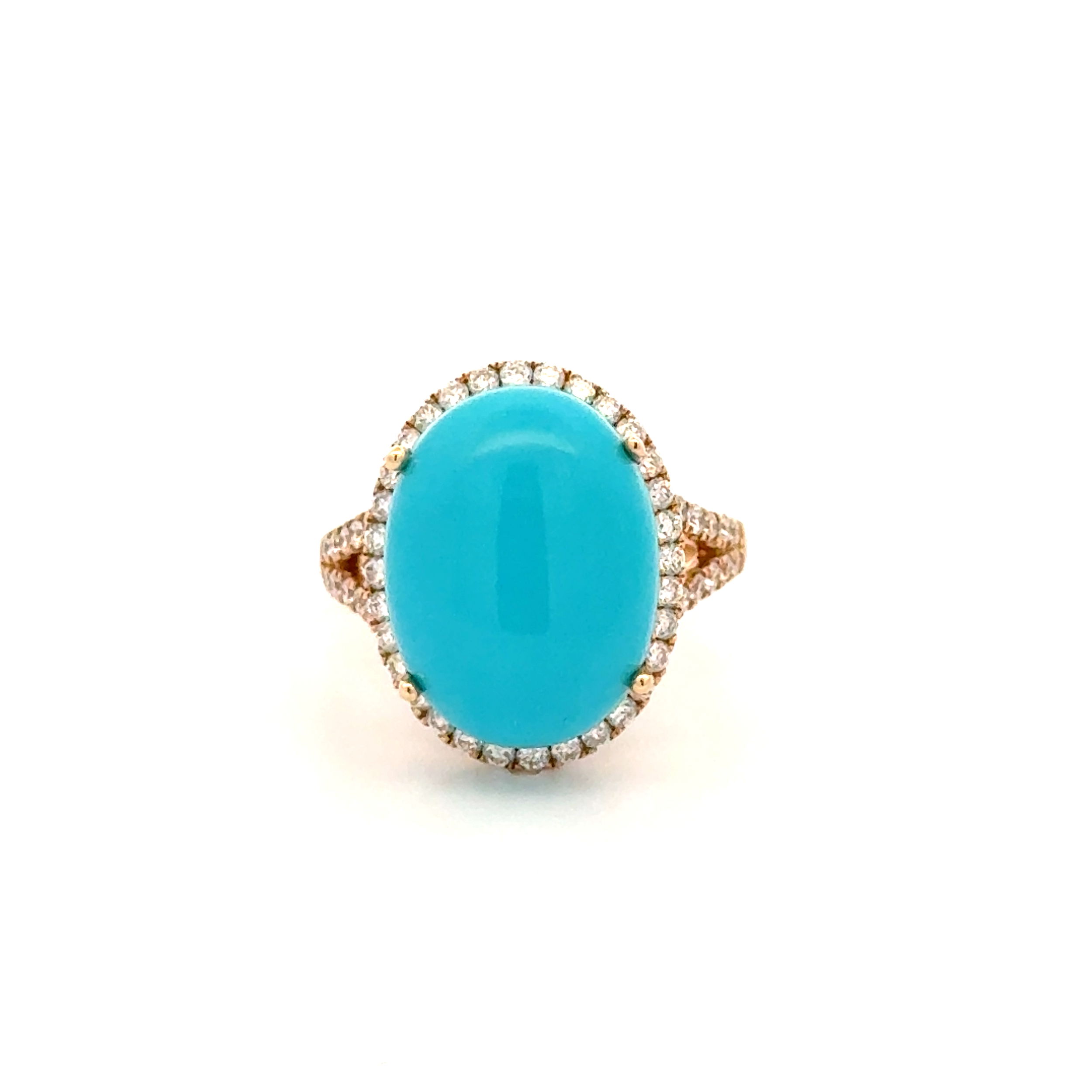 14K YG EFFY Turquoise Style & .30tcw RBC Diamond Split Shank Ring 5.2g, s7