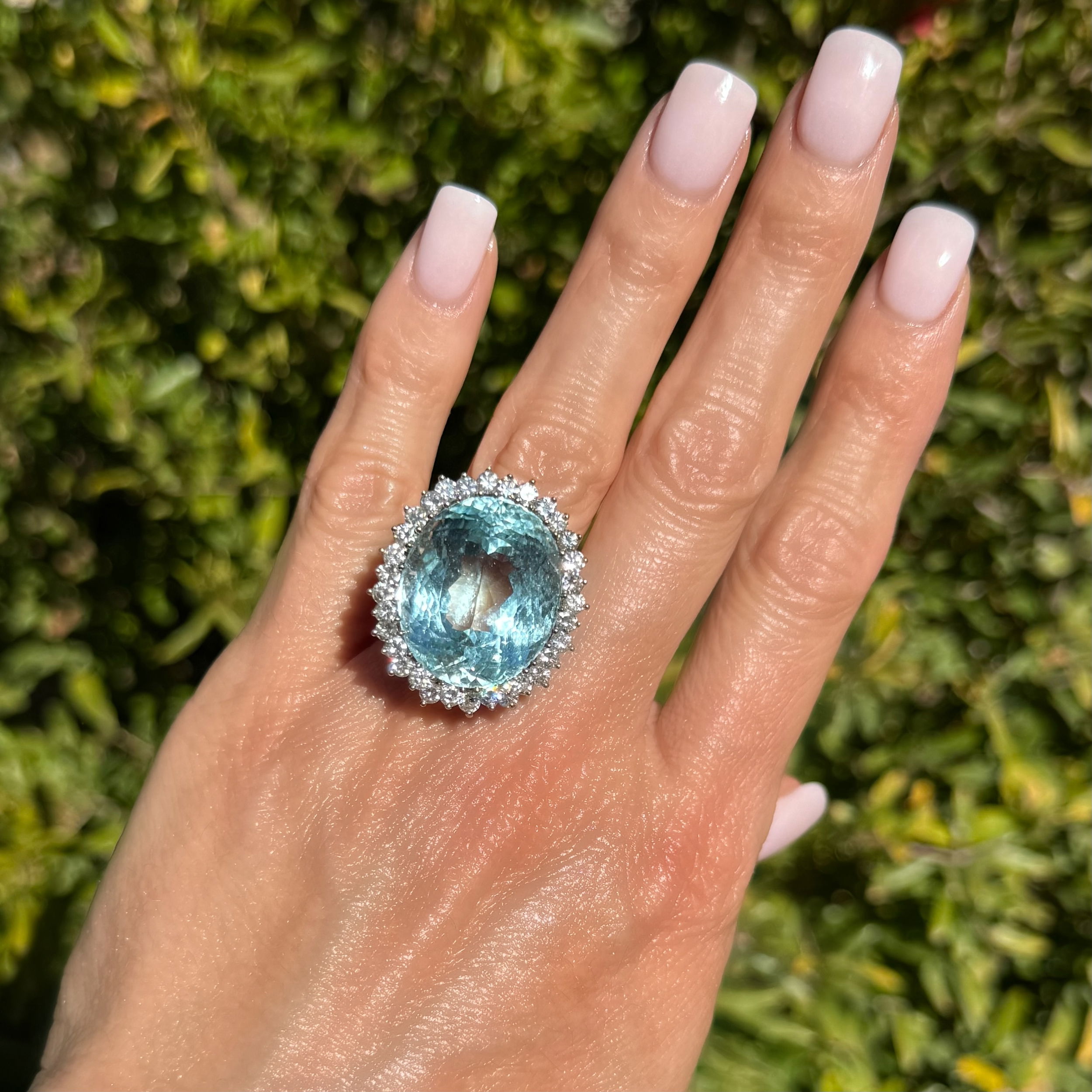 14K WG 1950s 30ct Oval Aquamarine & 2.24tcw RBC Diamond Ring 18.5g, s8 | Platinum 1911
