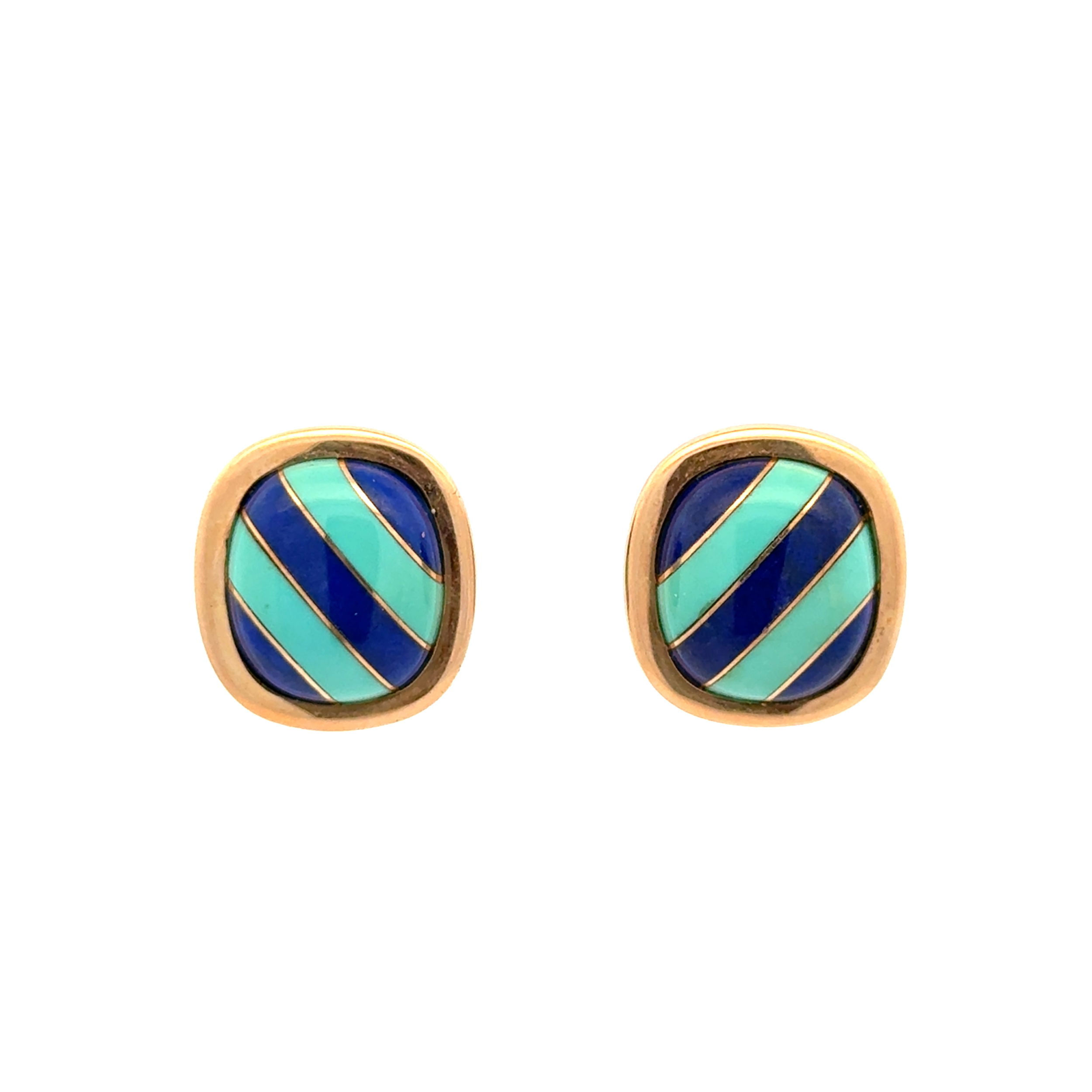 14K YG Turquoise & Lapis Striped Earrings French Clip Backs 13.1g, | Platinum 1911