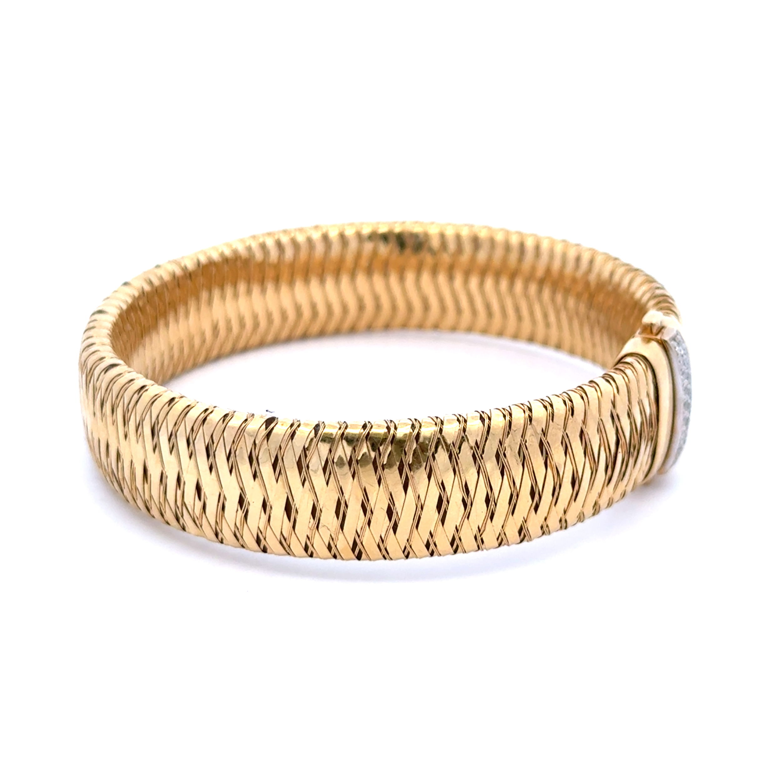 - 18K YG Roberto Coin Primavera .25tcw Pave Diamond Flexible Bracelet 29.5g, 7.5"