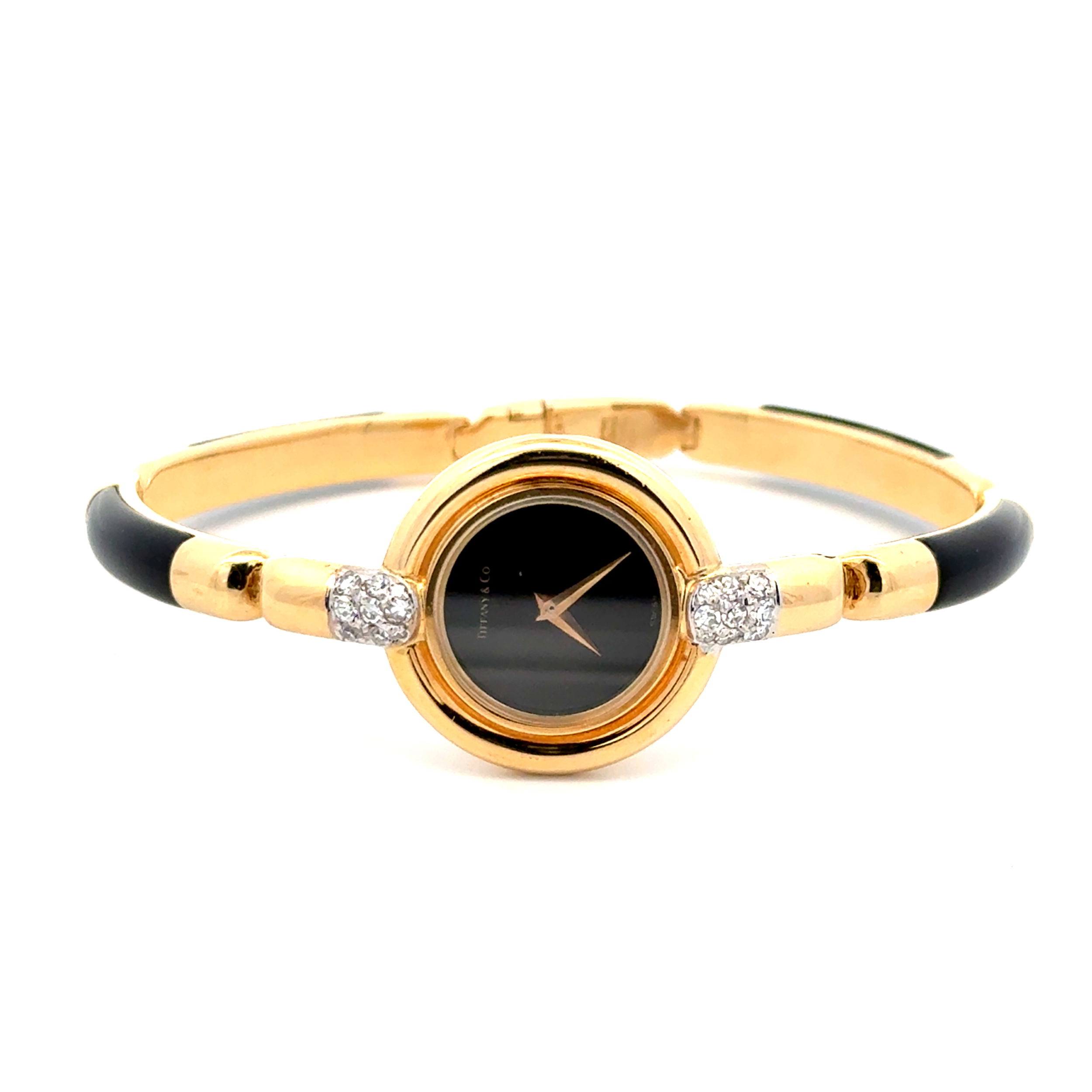 18K YG Tiffany & CO Chopard Onyx & .20tcw Diamond Quartz Watch 45.7g, 7" G3023 1 403887 811