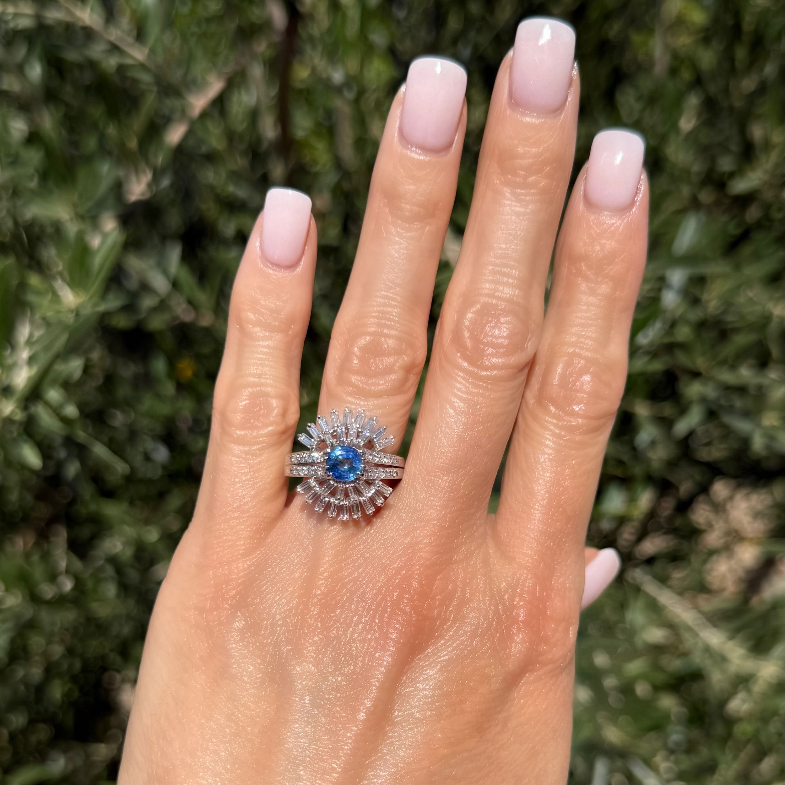 - Platinum Vintage 1.00ct Cushion Sapphire & 1.00tcw Baguette & RBC Diamond Ring 7.8g, s