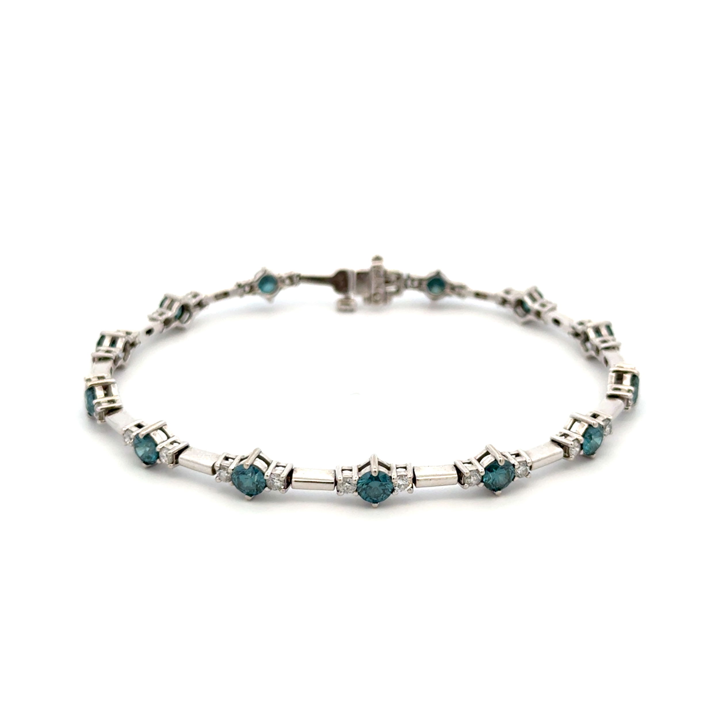 - 14K WG 3.25tcw Irradiated Blue Diamond & .55tcw RBC Diamond Line Bracelet 9.4g, 7”