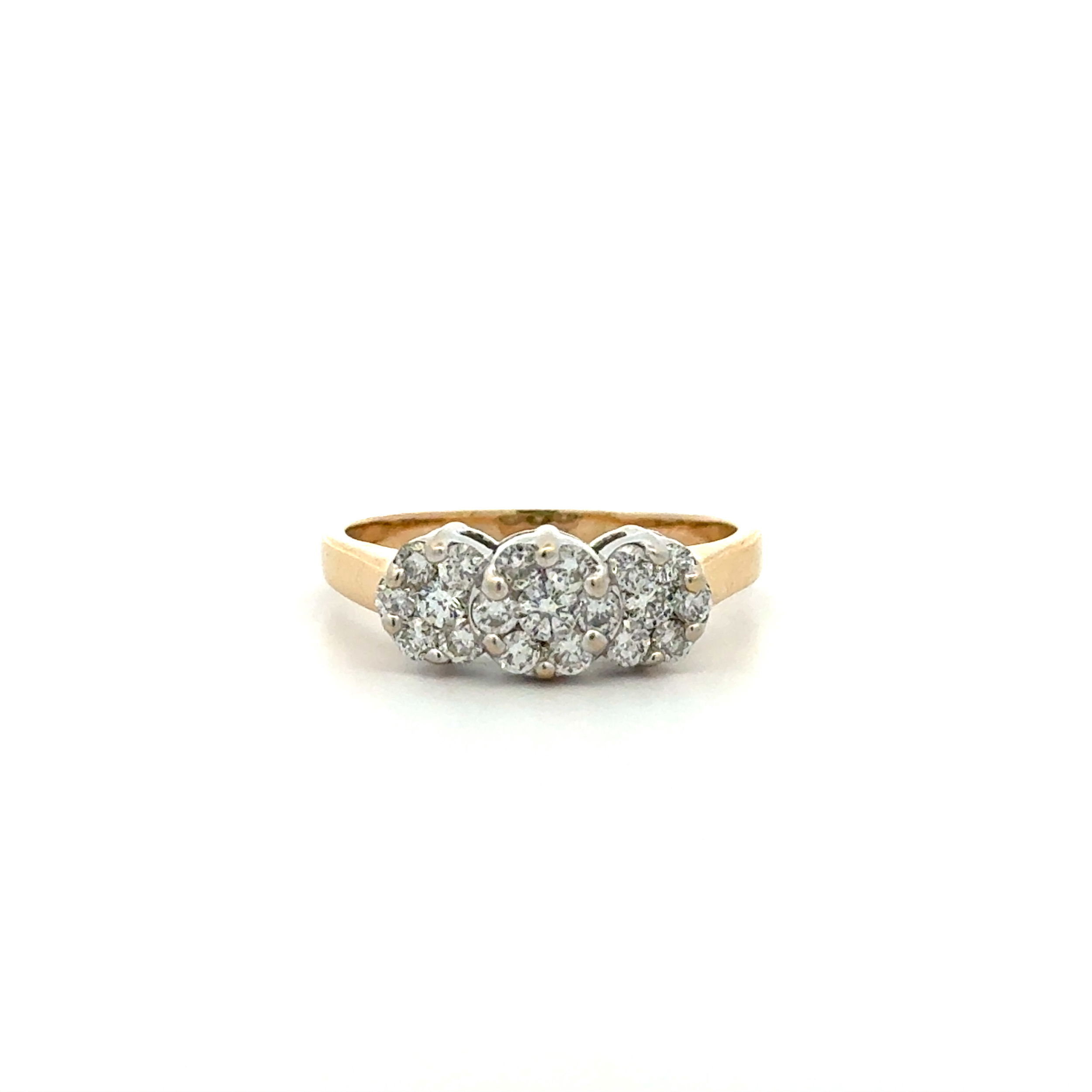 14K 2tone 1.00tcw 3 Stone Cluster Diamond Ring 5.2g, s10.5