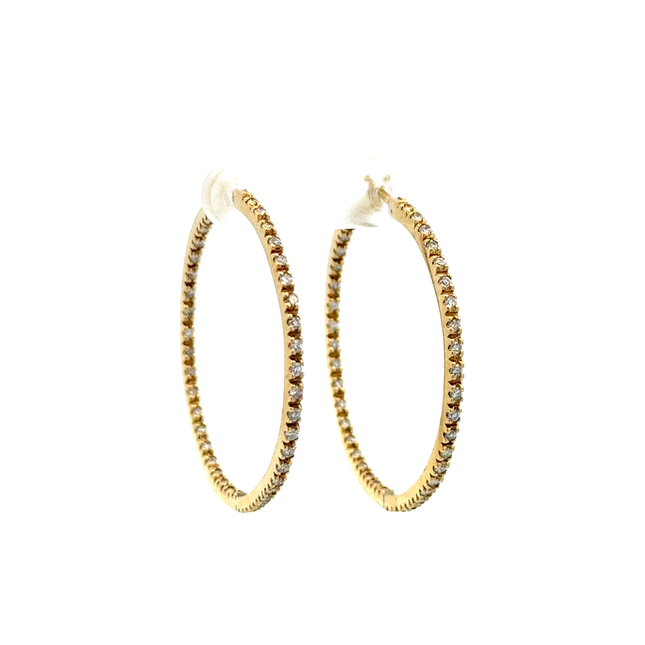 - 18K YG 1.25tcw RBC Diamond Inside Out Hoop Earrings 8.4g, 1.45”