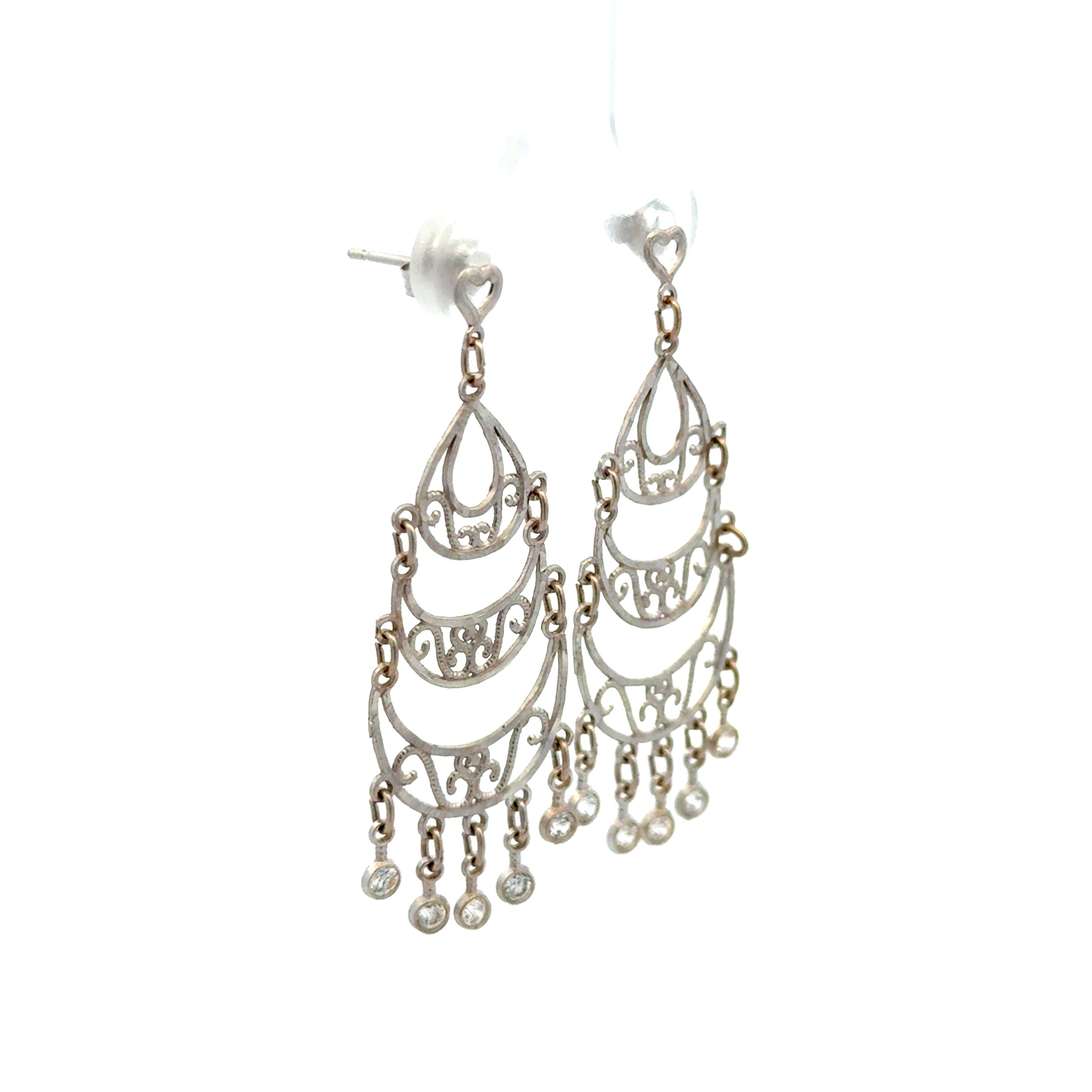 - 14K WG Art Deco .30tcw OEC Diamond Chandelier Dangle Earrings 2.4g, 1.5”