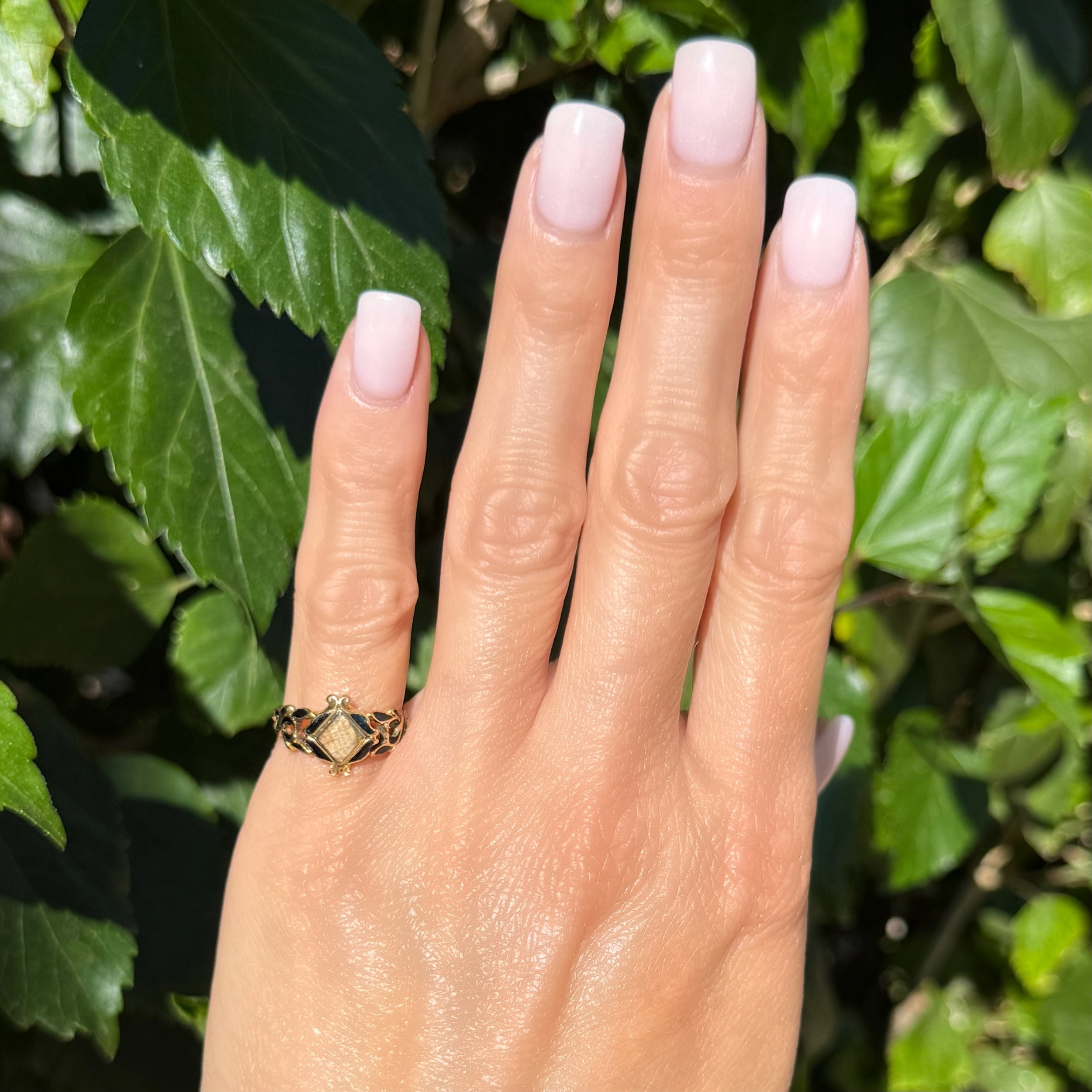 17K YG English Victorian Mourning Enamel & Hair Ring 2.9g, s6