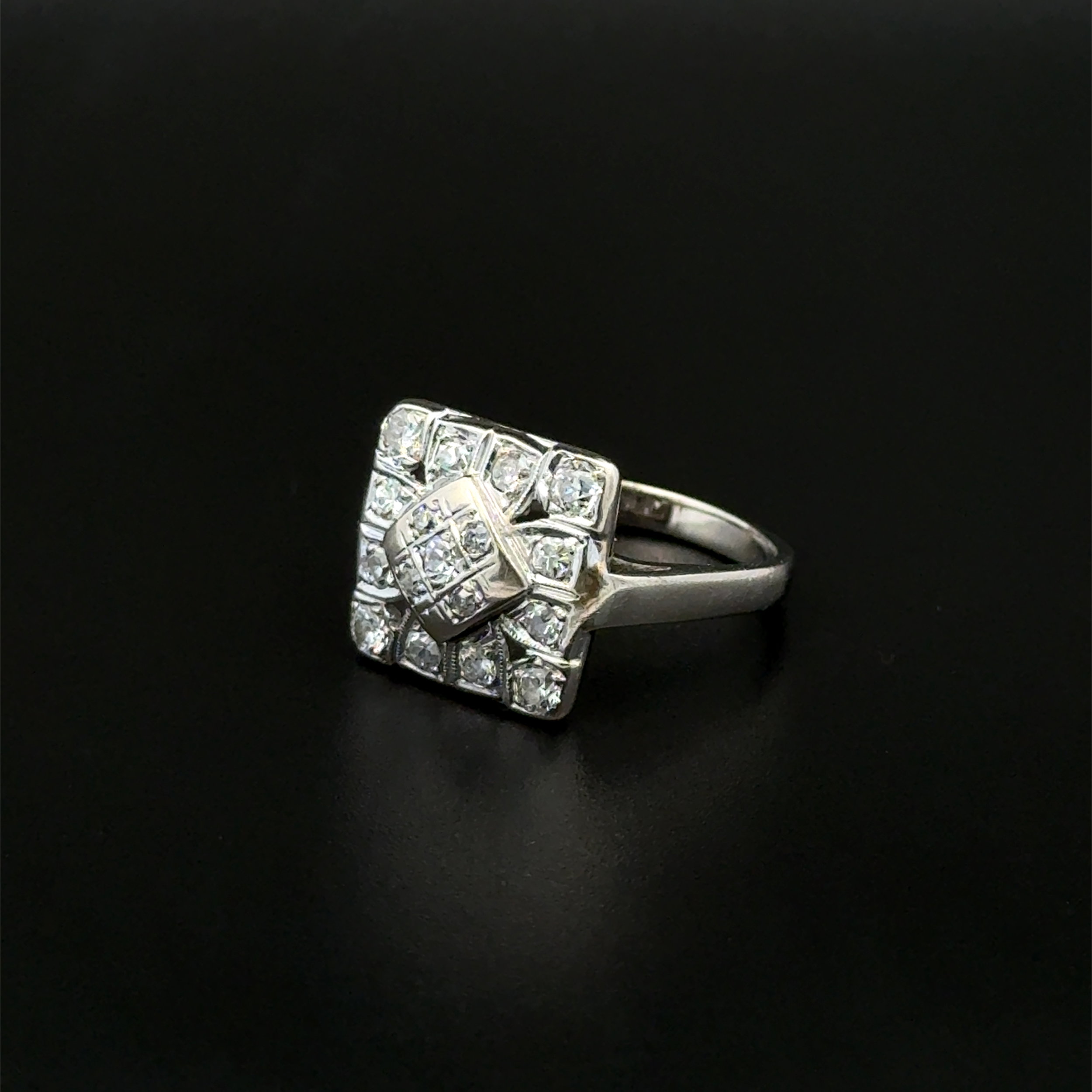 14K WG Art Deco .85tcw Diamond Square Top Ring 5.1g, s7.25