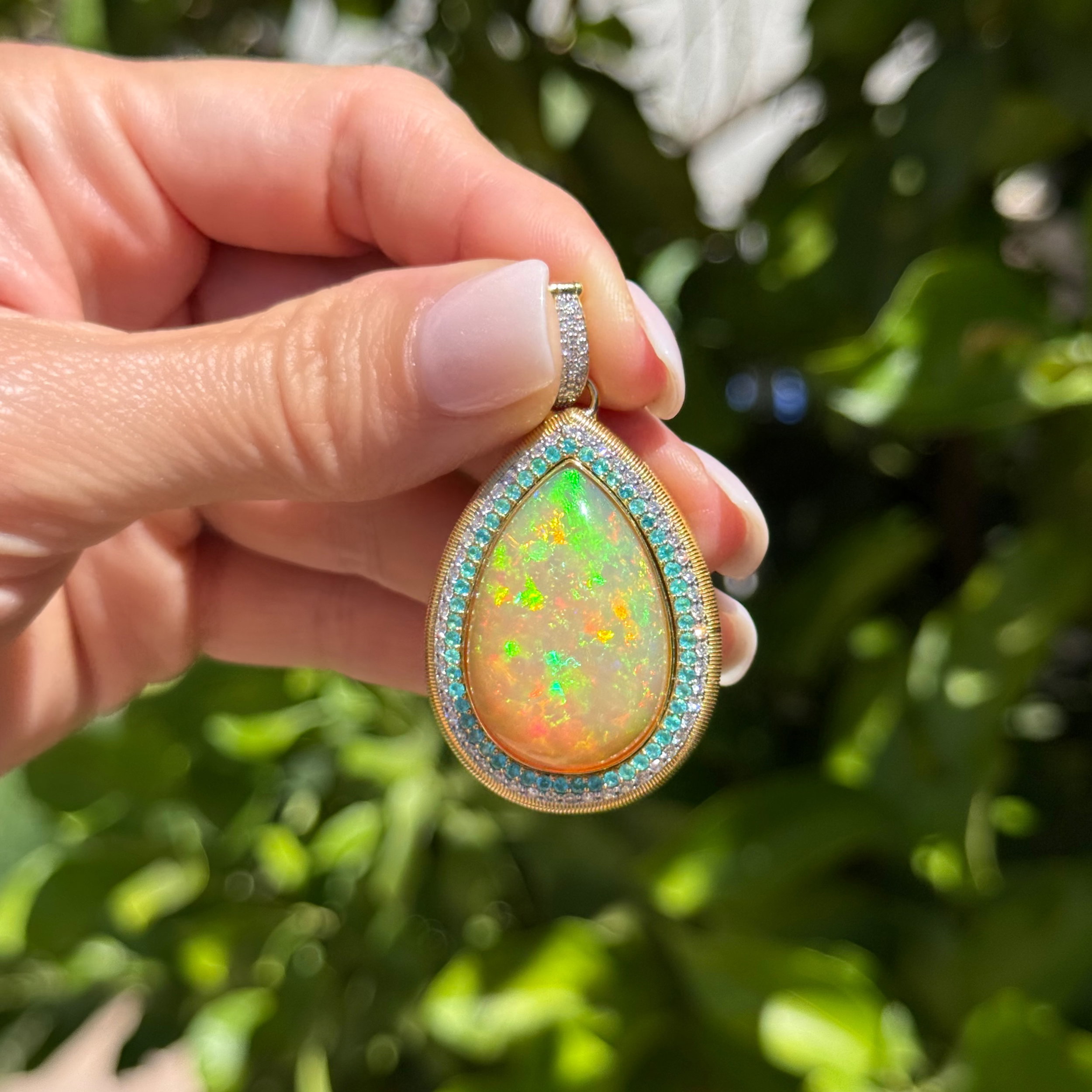 18k 22.70tcw Ethiopian Opal With Halo Paraiba .70tcw & Diamond .89tcw Pendant 28.8g