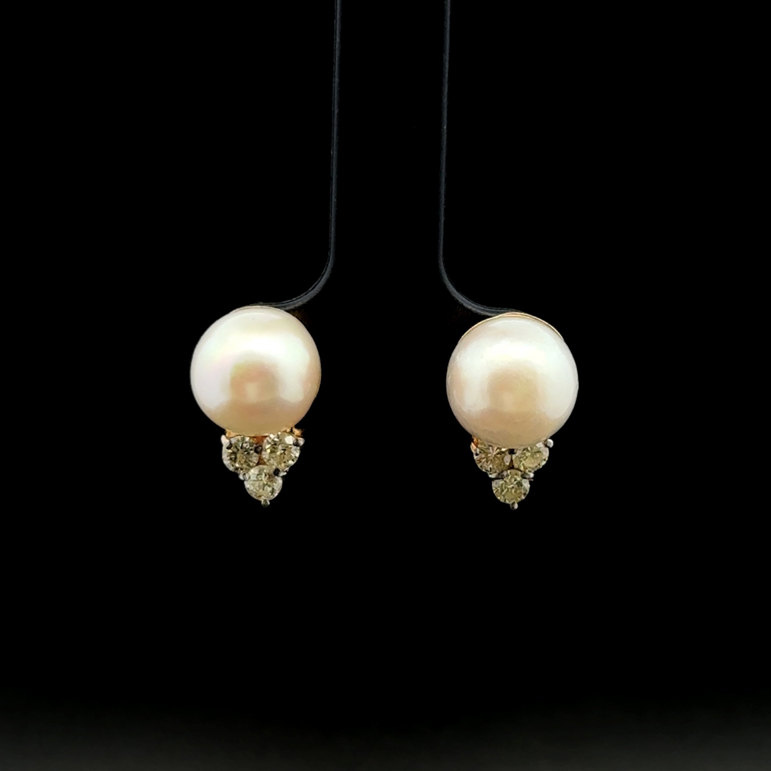 14K YG 9.00mm White Pearl & .30tcw Diamond Stud Earrings 4.6g | Platinum 1911