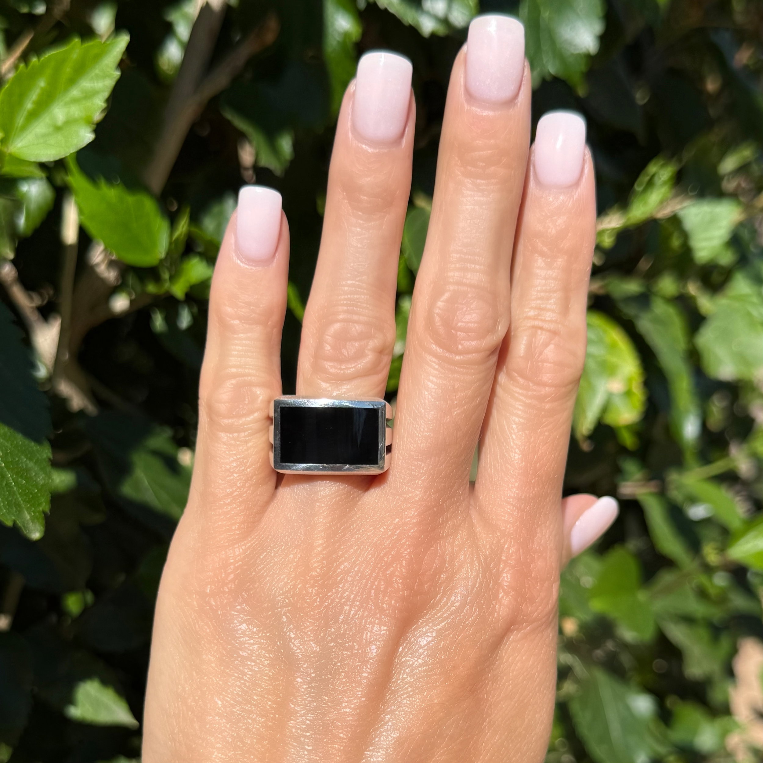 925 Sterling David Yurman Black Onyx Slab Beveled 14.8mm Signet RIng 22.2g, s7.5