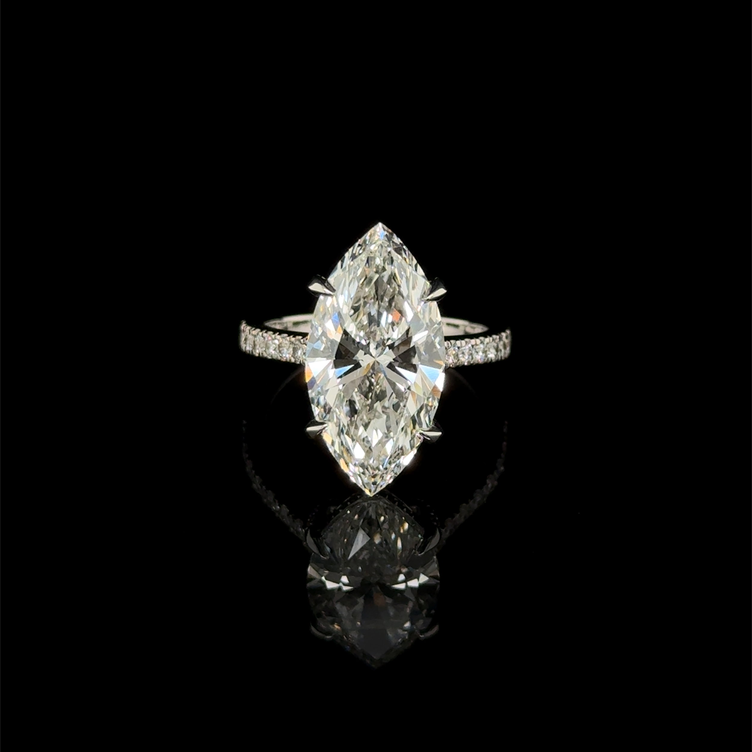 14k WG 6.10ct Lab Grown Marquise Diamond IGI#LG694504709 & .61tcw LG RBC Diamond Engagement ring 5.3g s6.5