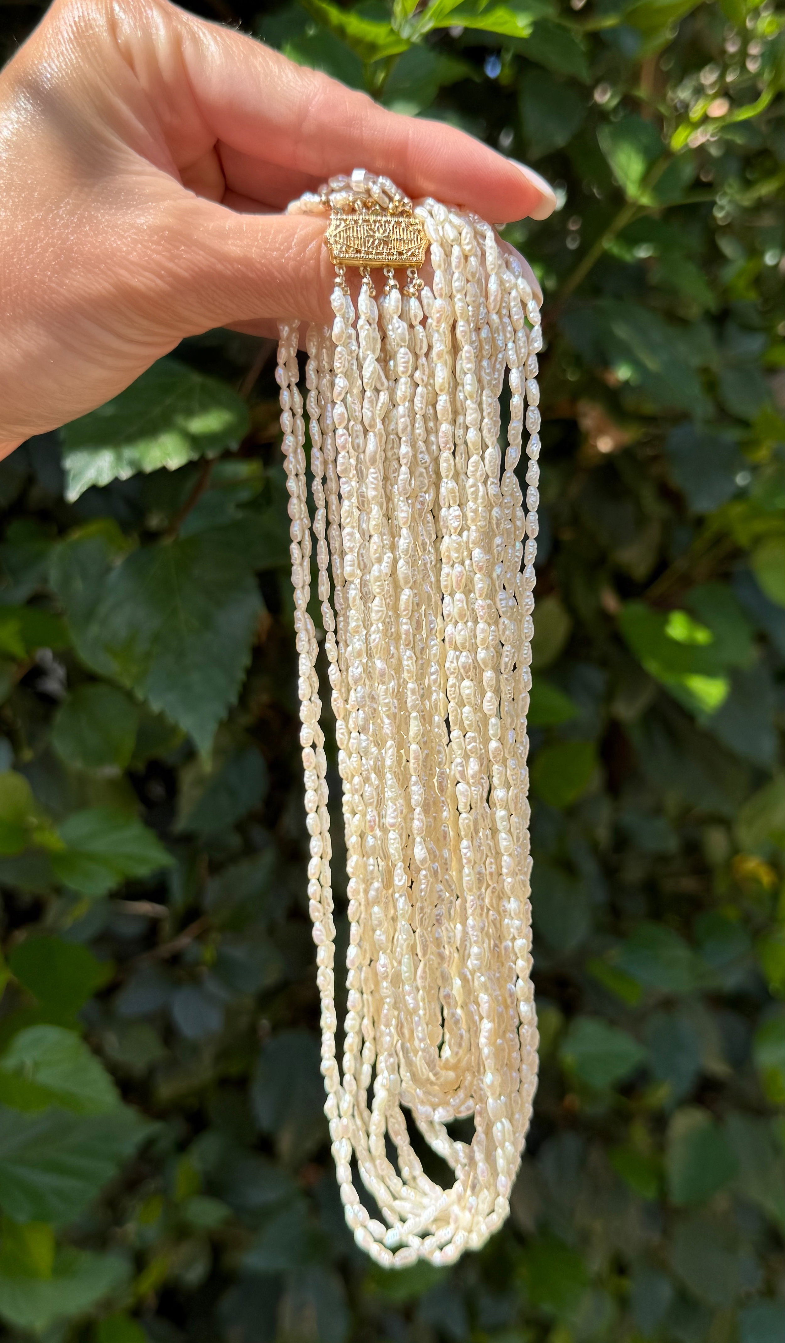 14K YG 12 Strand Keshi Pearl Necklace 96.1g, 30"