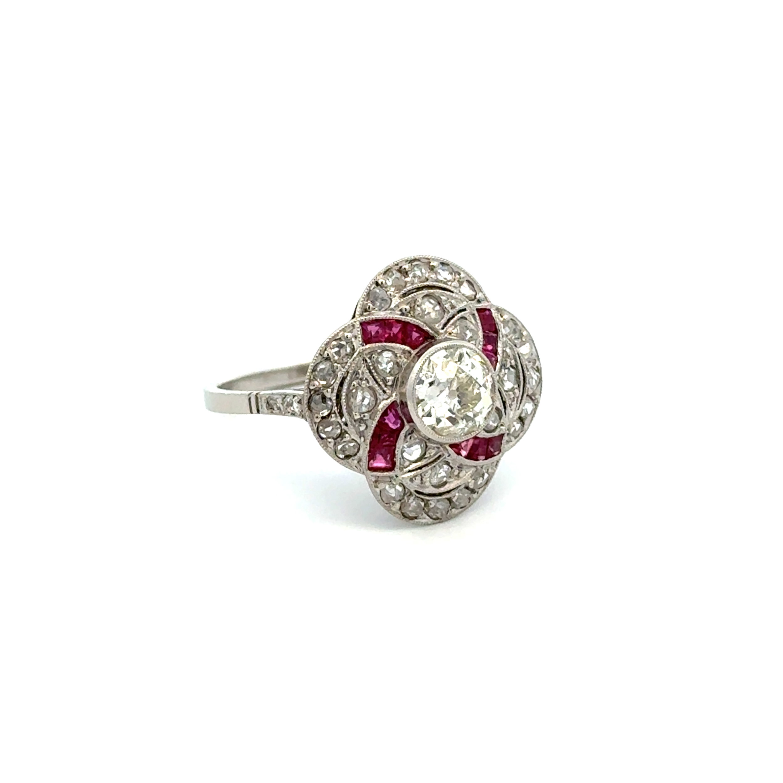 - Platinum .88ct OEC Diamond, .60tcw Ruby & .60tcw Old Cut Diamond Ring 6.0g, s7