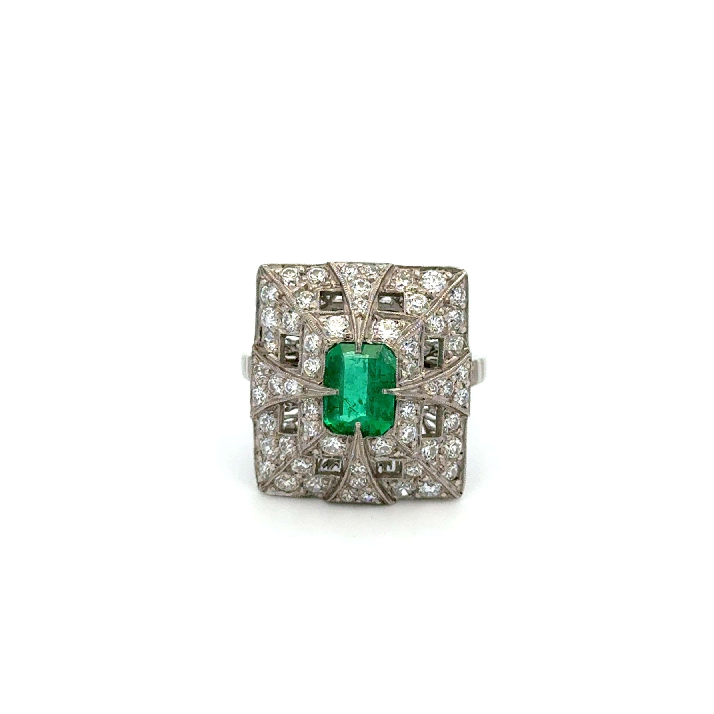 Platinum .86 Emerald & 1.26tdw RBC Diamonds Ring 7.9g, s7 | Platinum 1911
