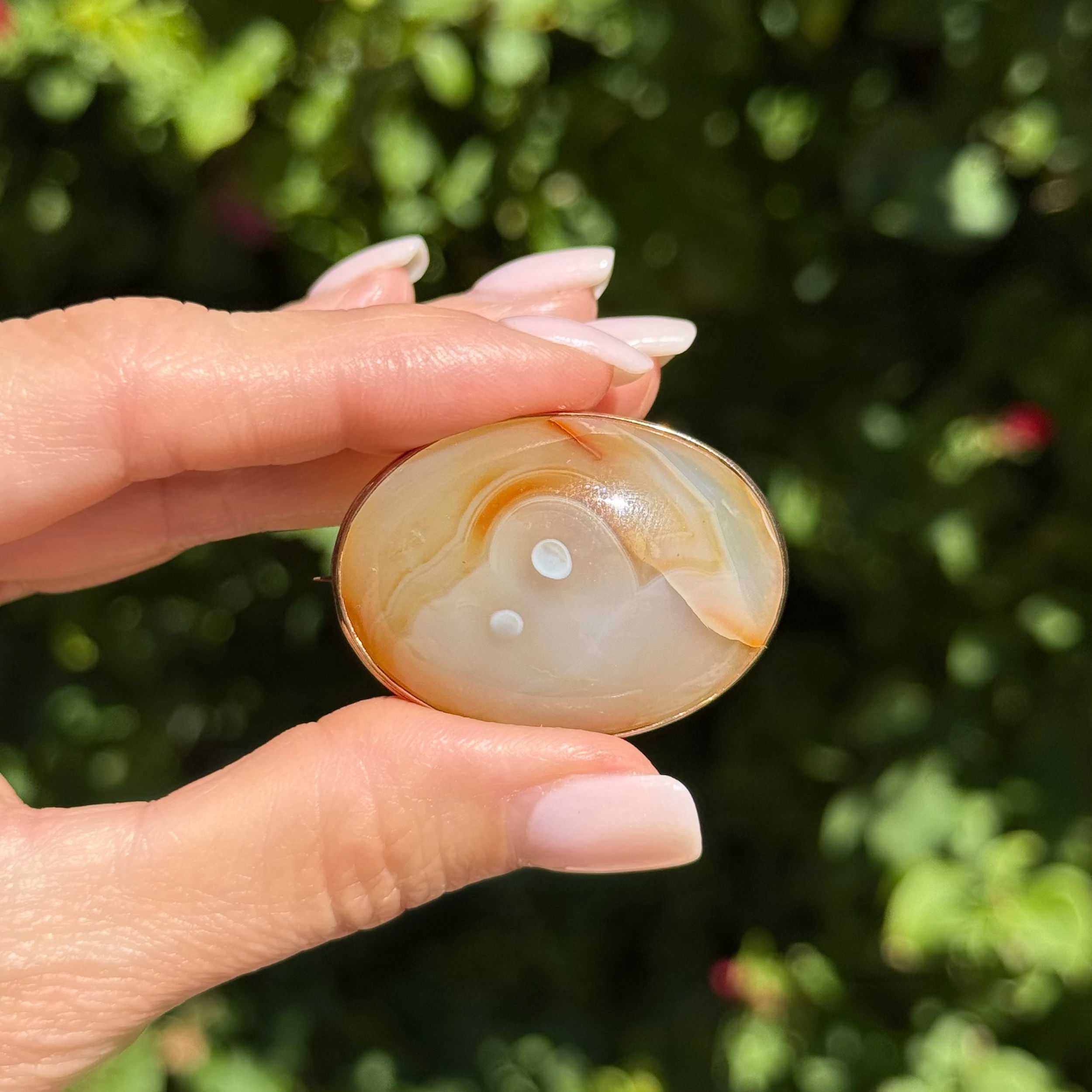 10K YG Victorian 85ct Oval Agate Brooch 21.4g