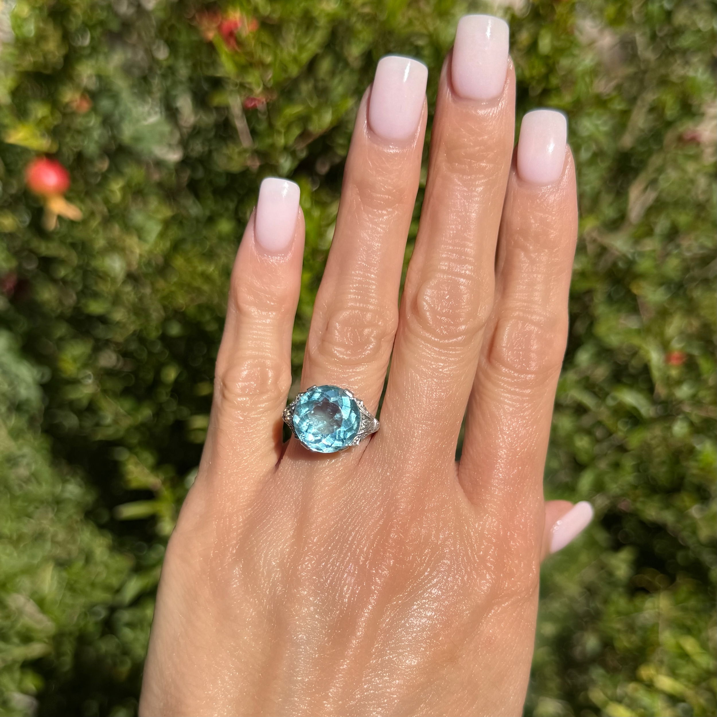 Platinum Art Deco 9.00ct Round Aquamarine & .10tcw Diamond Ring 5.5g, s5