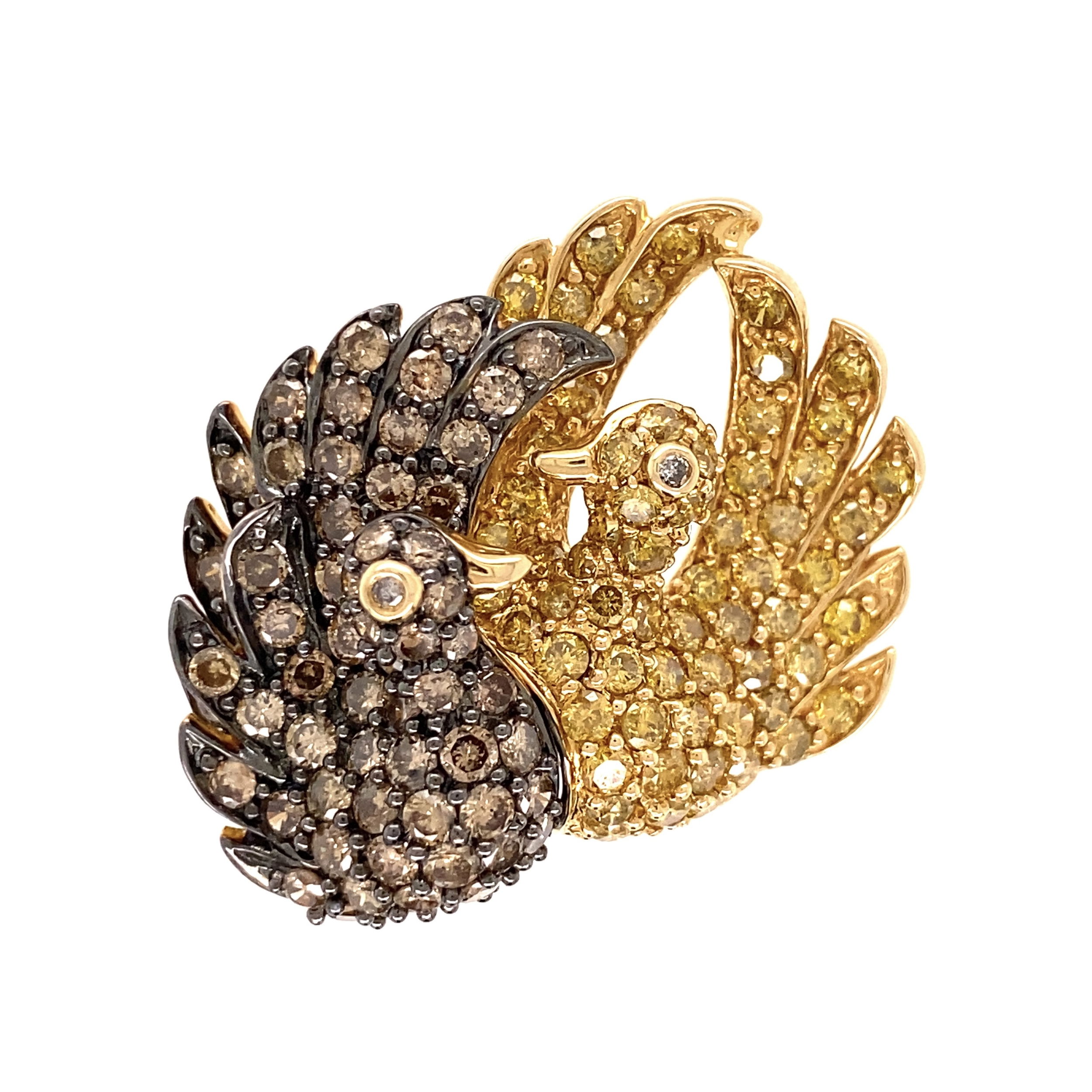- 14K YG Love Bird 5tcw Champagne & Yellow Diamond Ring 11.5g, s10