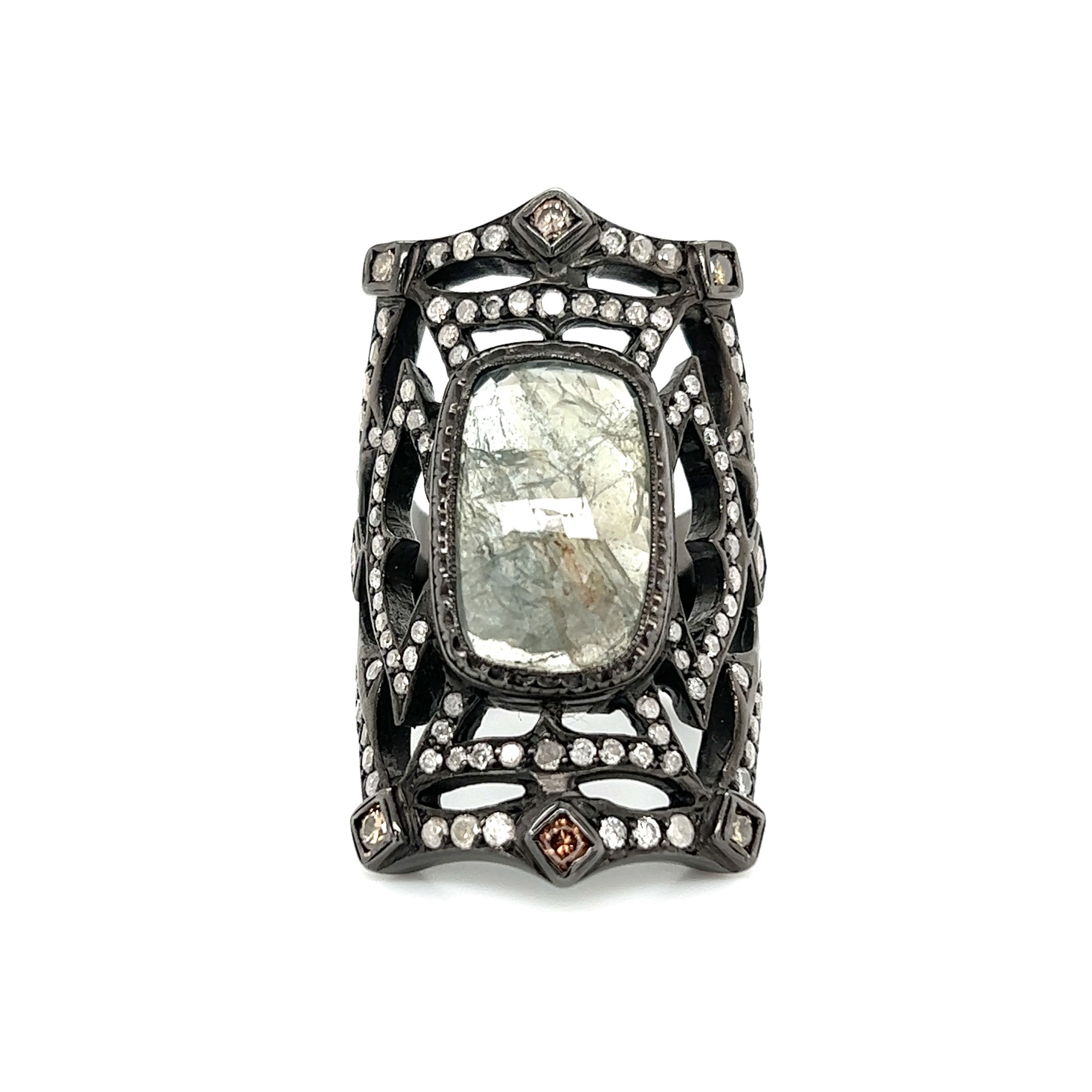 - 18K Black Gold LOREE RODKIN Medieval Salt & Pepper 8.25tcw Diamond Cuff Ring 35.8g, s8.5