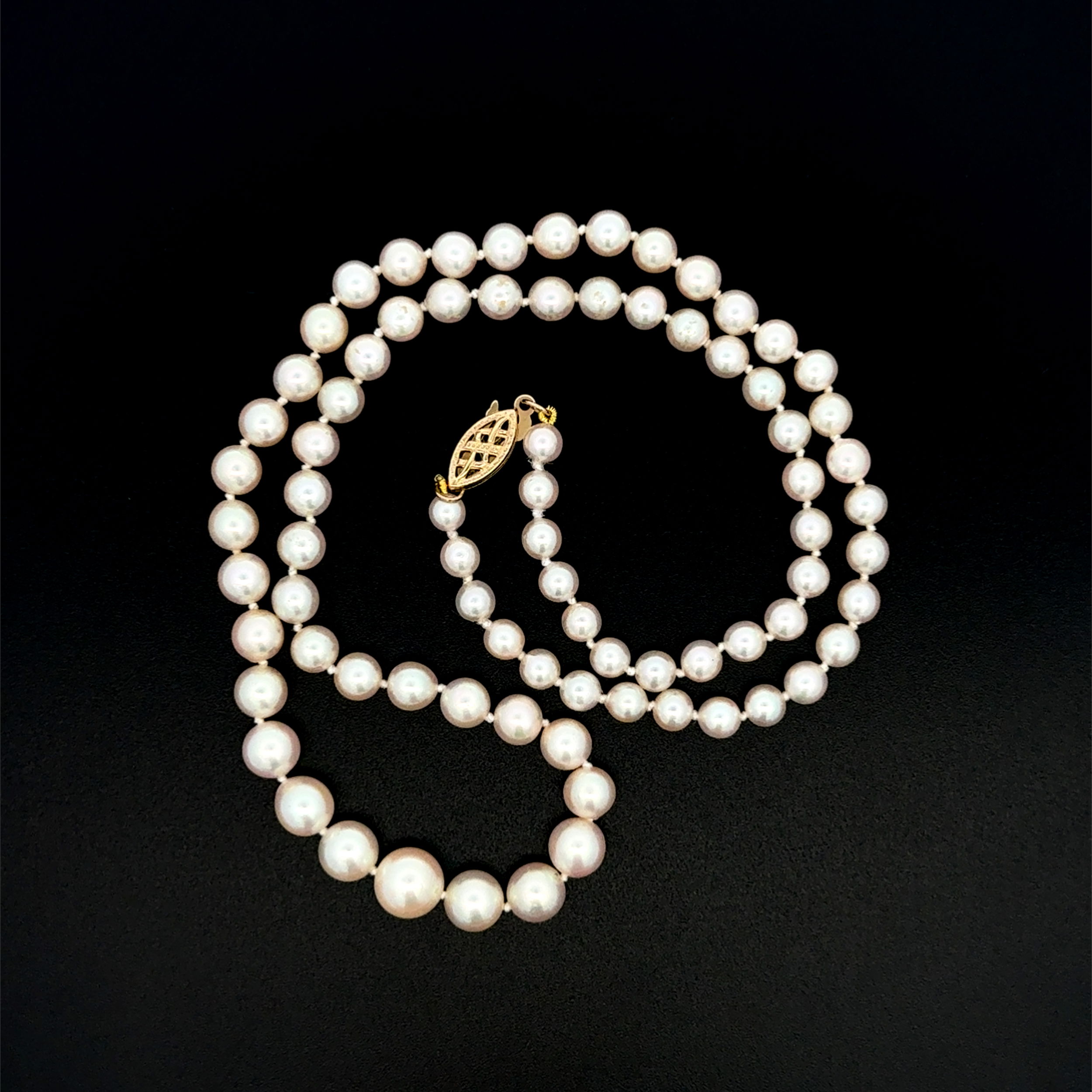 - 14K YG 4.10mm to 7.15mm Graduated White Cultured Pearl Strand Necklace 13.0g, 18"