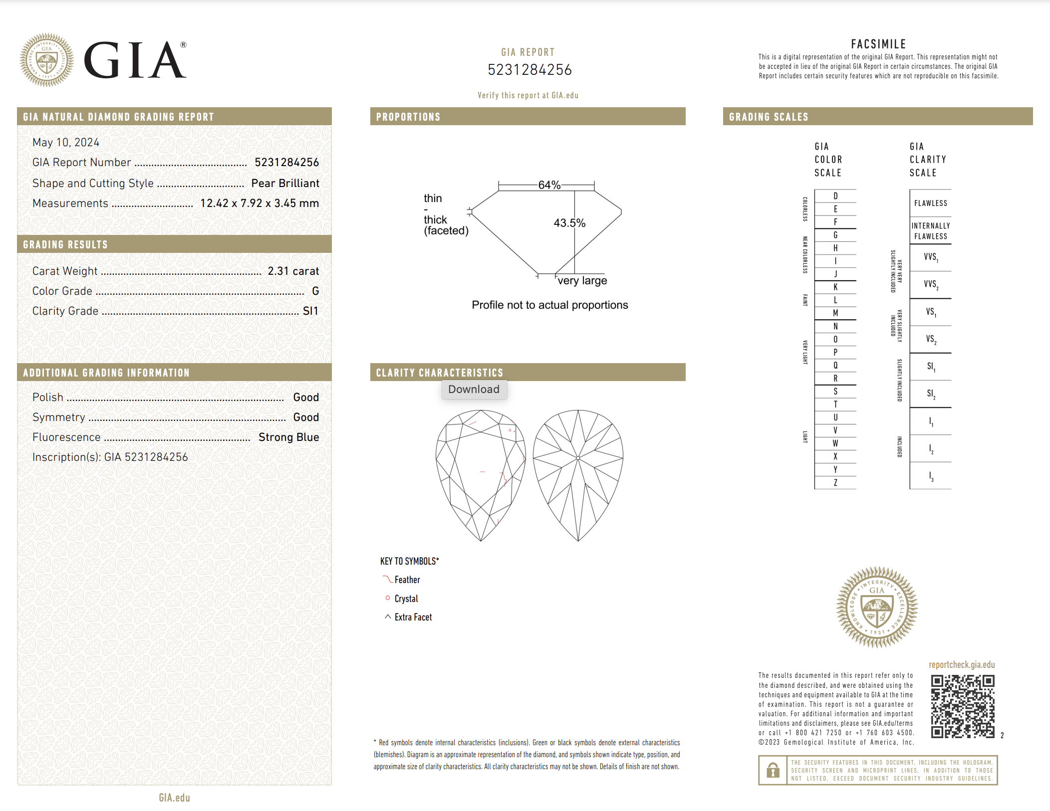 2.31ct Pear Shape Diamond G-SI1 GIA #5231284256