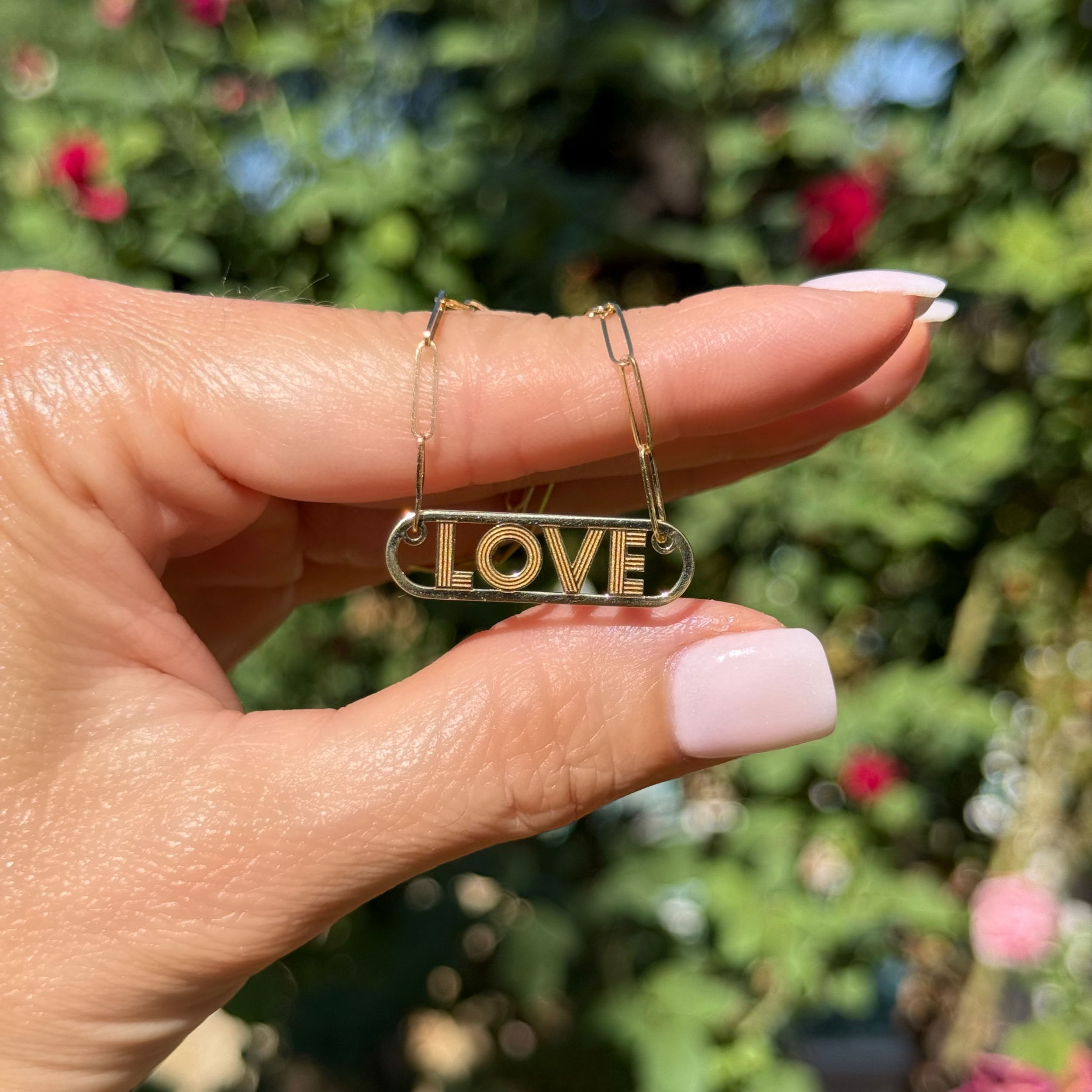14K YG Petite LOVE Pendant on Paper Clip Chain Necklace 4.7g, 18"