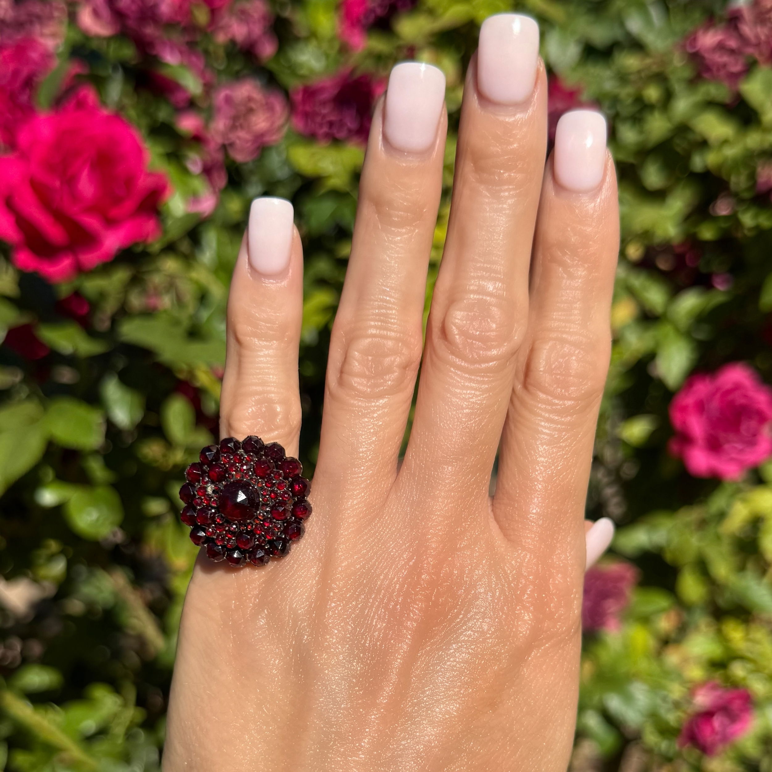 - 9K YG Victorian Bohemian 5.00tcw Garnet Cluster Ring 8.2g, s4.5
