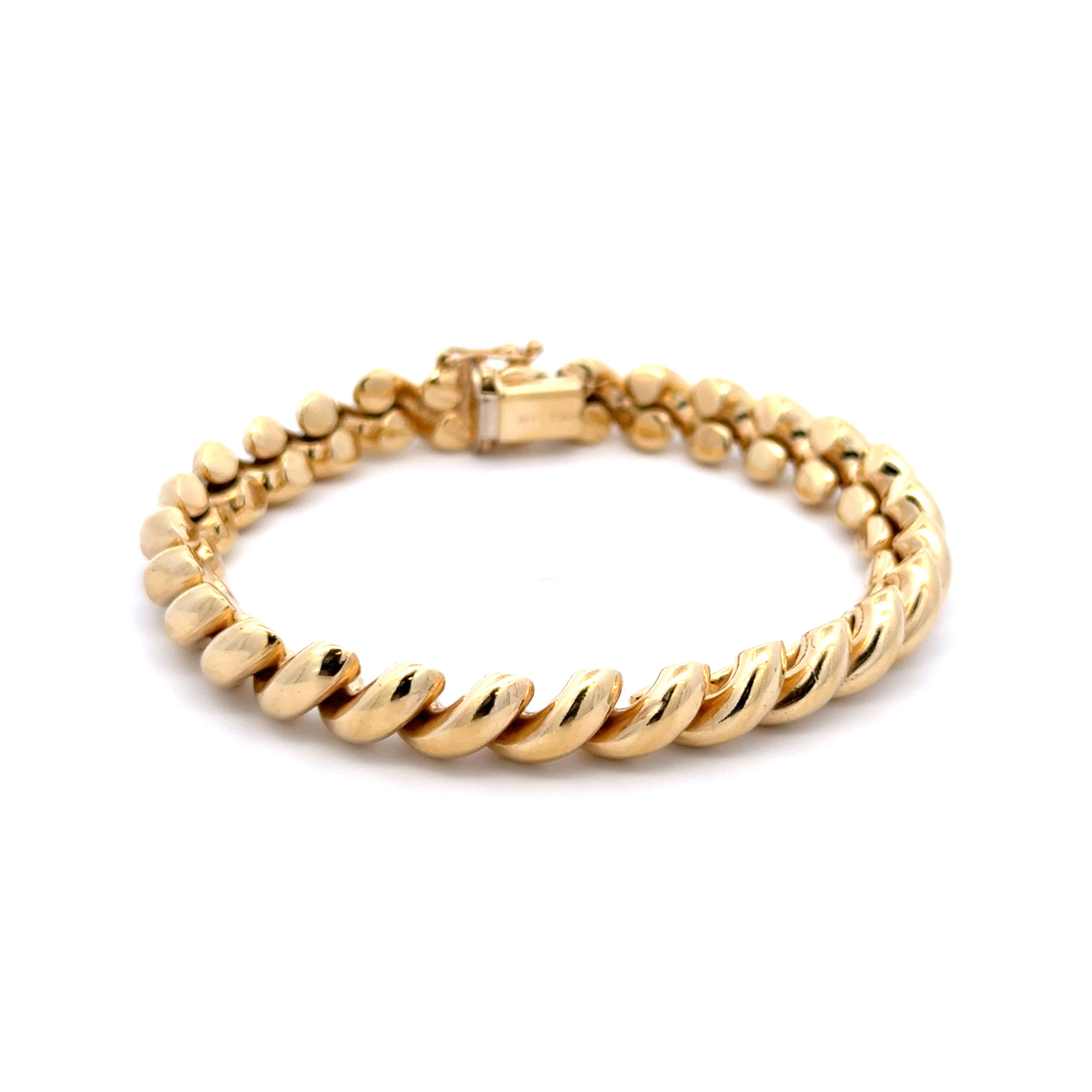 - 14K YG Polished Macaroni Soft Gold 8.10mm Link Bracelet 20.4g, 7"