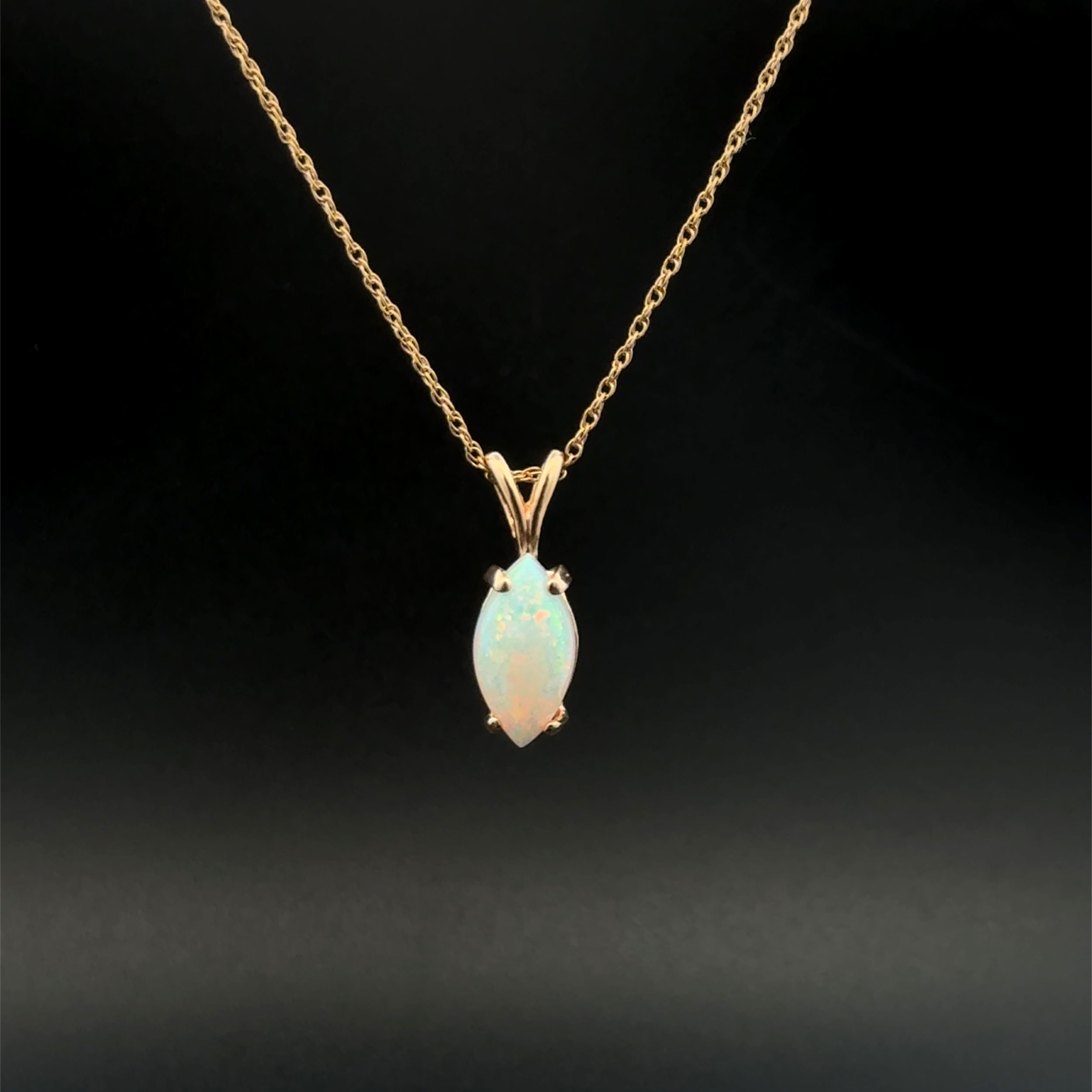 - 14K YG 1ct Marquis White Crystal Opal Solitaire Pendant Necklace 2.9g, 18"
