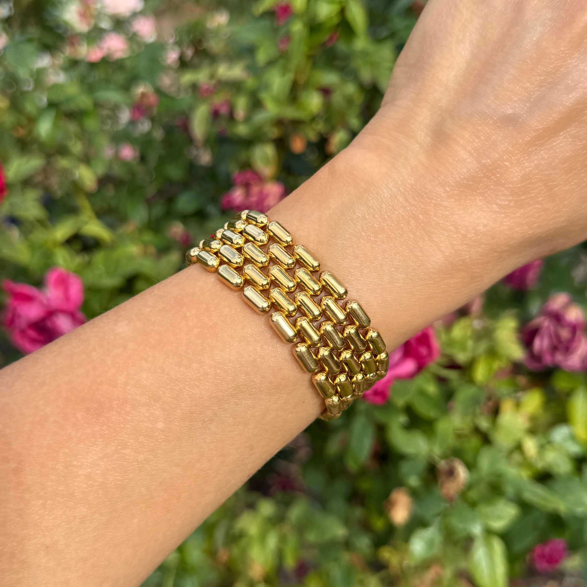 18K YG Adriano Chimento Italian 5 Link 22mm Wide Bracelet 57.5g, 7.25"