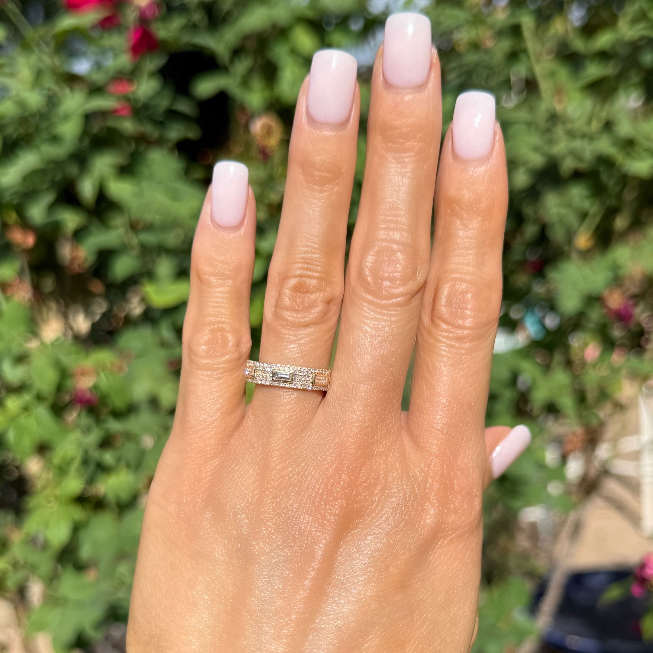 - 14K YG .25tcw Baguette & .32tcw RBC Diamond 5.10mm Band Ring 3.4g, s7.25