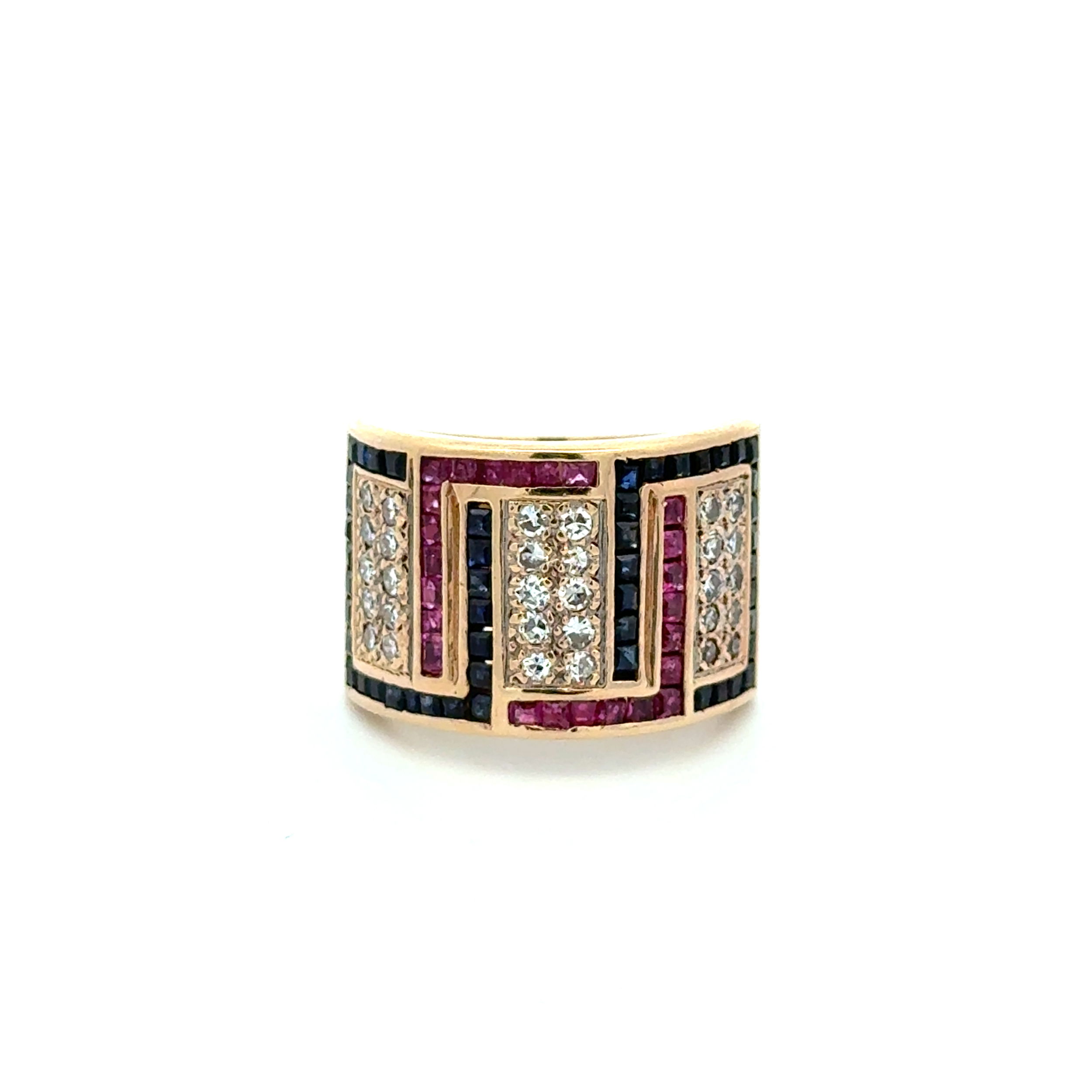 14K YG .30tcw Diamond, .50tcw Ruby & 1.00tcw Sapphire 15.5mm Band Ring 13.7g, s8