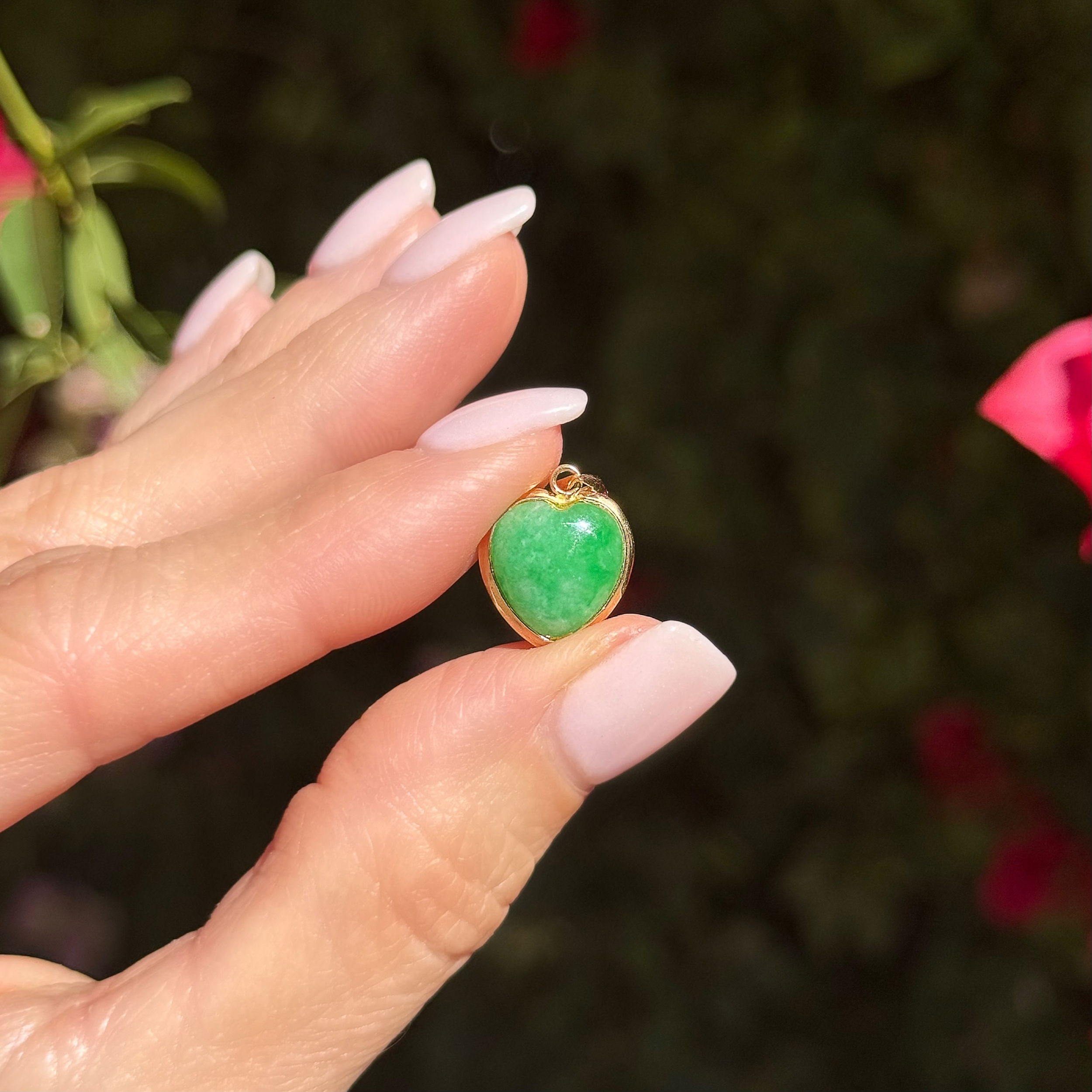 14K YG 2.50ct Heart Shape Jadeite Jade Pendant Charm 1.3g