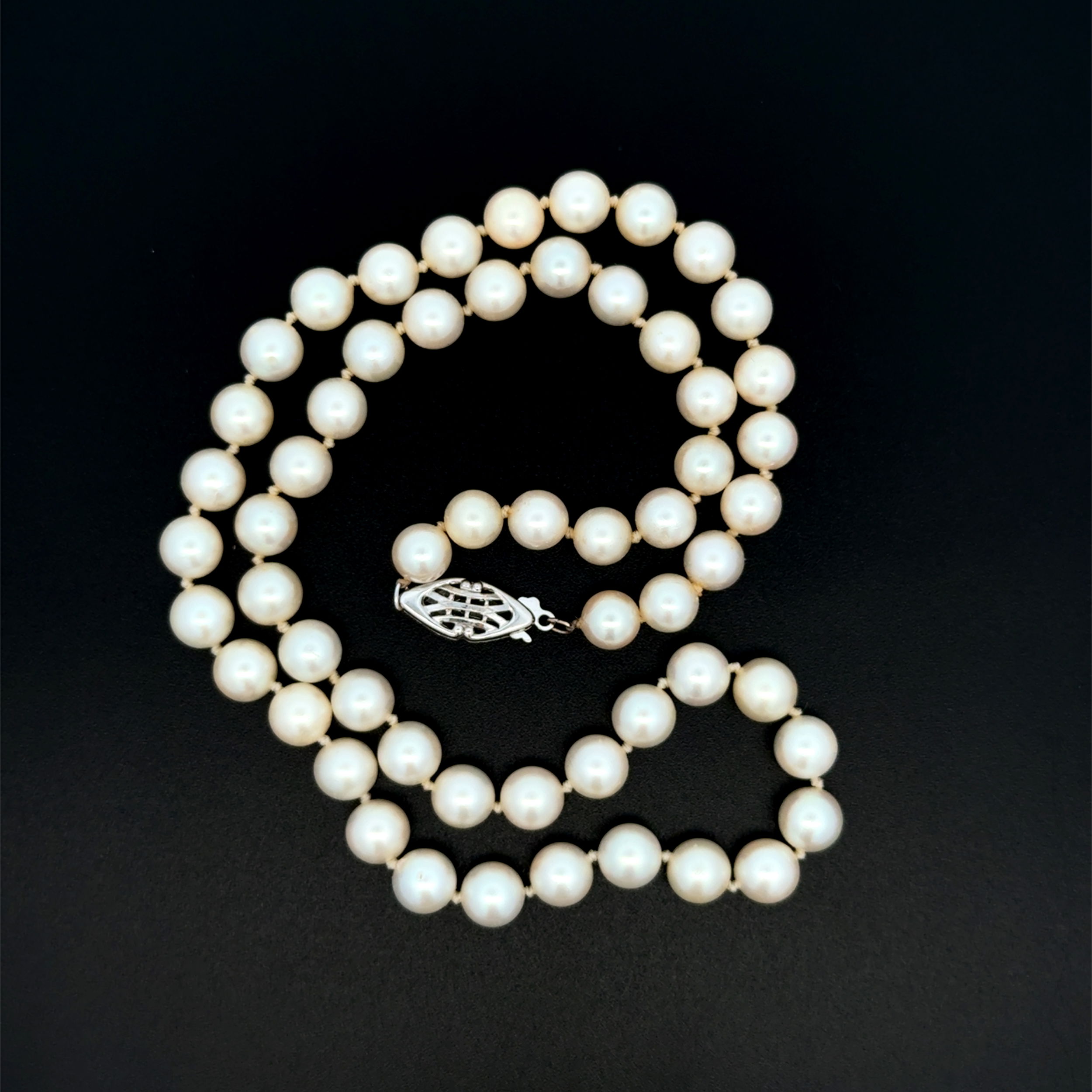 14K WG 6.50mm White Pearl Necklace 20.7g, 16.5in