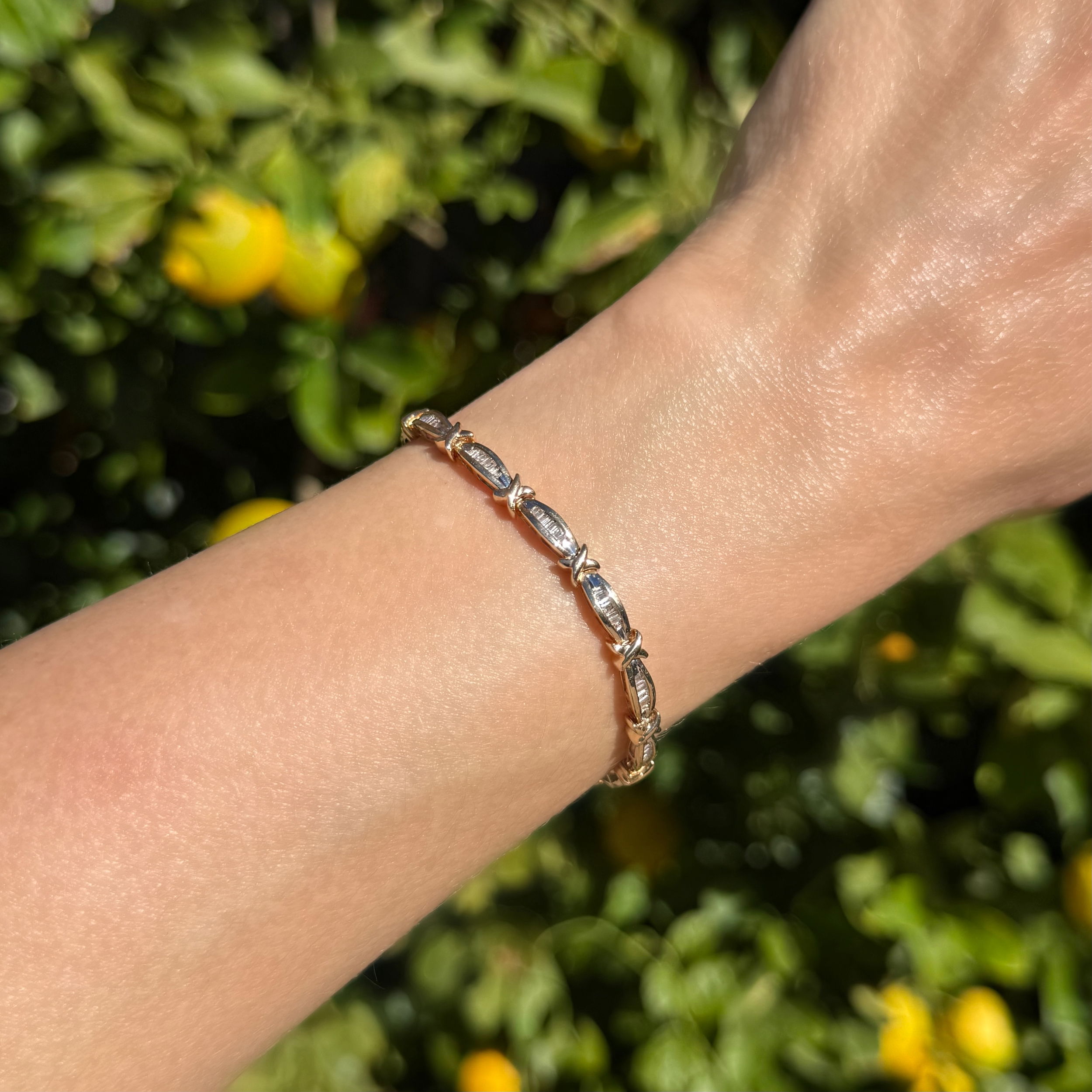 10K 2tone 1.00tcw Baguette Diamond Link Bracelet 10.7g, 6.75"