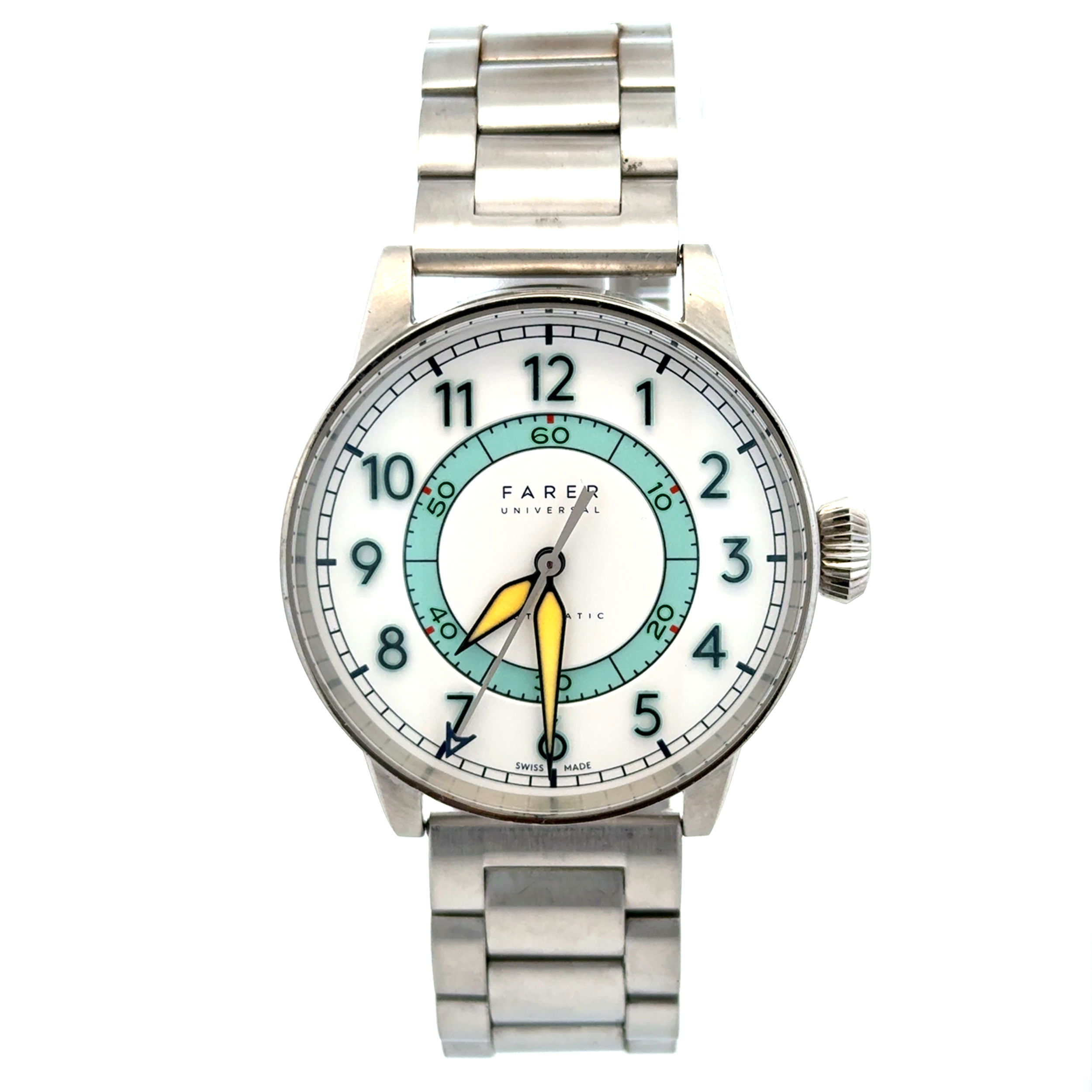 Farer Universal Automatic 40mm Stainless Steel Watch Green White Dial | Platinum 1911