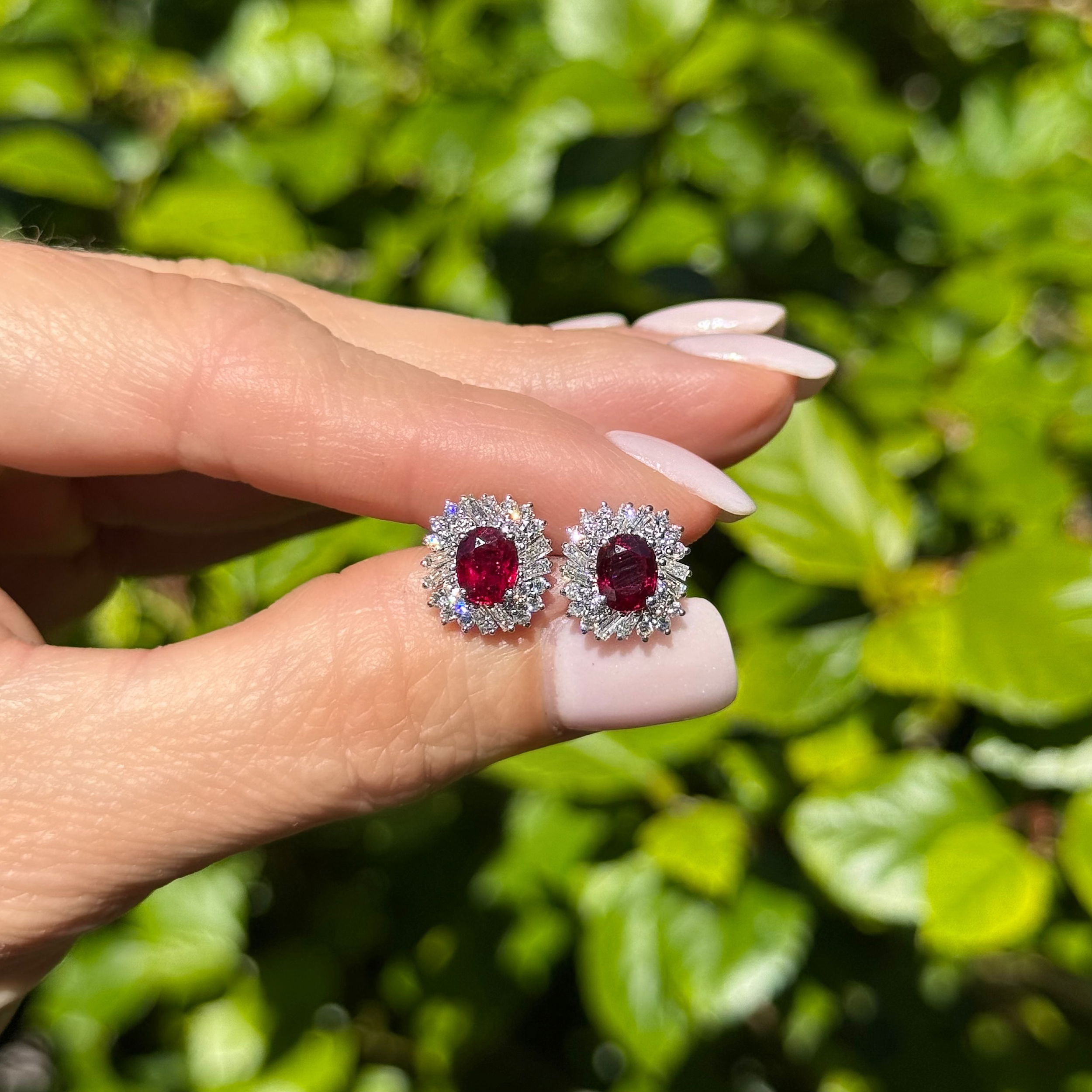 - Platinum 1.68cw Oval Ruby & 1.01tcw Baguette & Round Diamond Stud Earrings 4.6g
